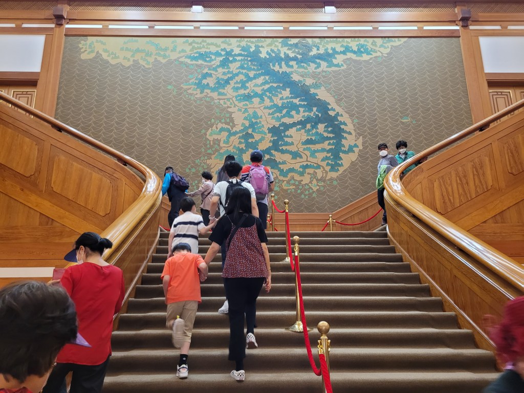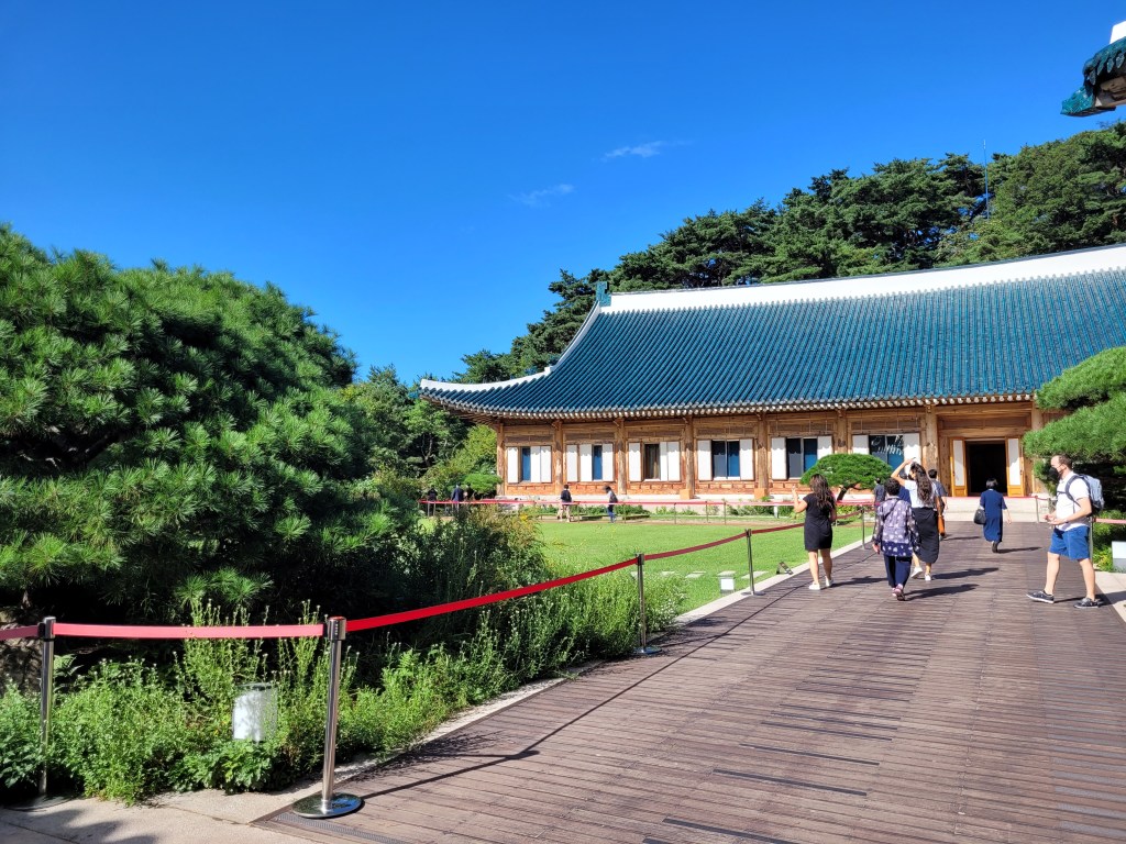 The following day, another full offering starting with a bright and early trip to Cheong Wa Dae, also known as The Blue House, the former official residence and executive office of the South Korean president. He recently moved the location of his government elsewhere and so The Blue House (named for the colour of the roof tiles) has been opened up to the public. As a foreigner I can’t book a ticket for this online like Korean residents can, I just need to present myself at the gate at one of the allotted times (only twice a day) waving my passport and hope I am one of the 500 non-Koreans allowed in. Luckily today I am.