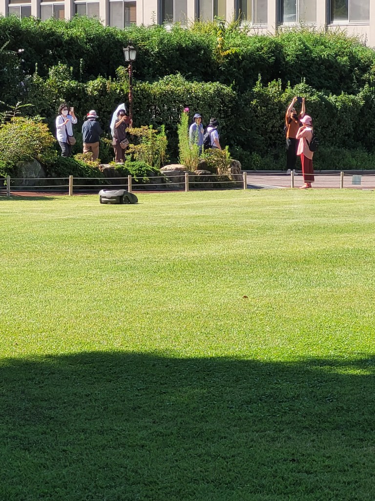 The grounds are really quite pretty with lawns and an area of woodland. I saw my first Buddha here and my first Roomba robot grass cutter.