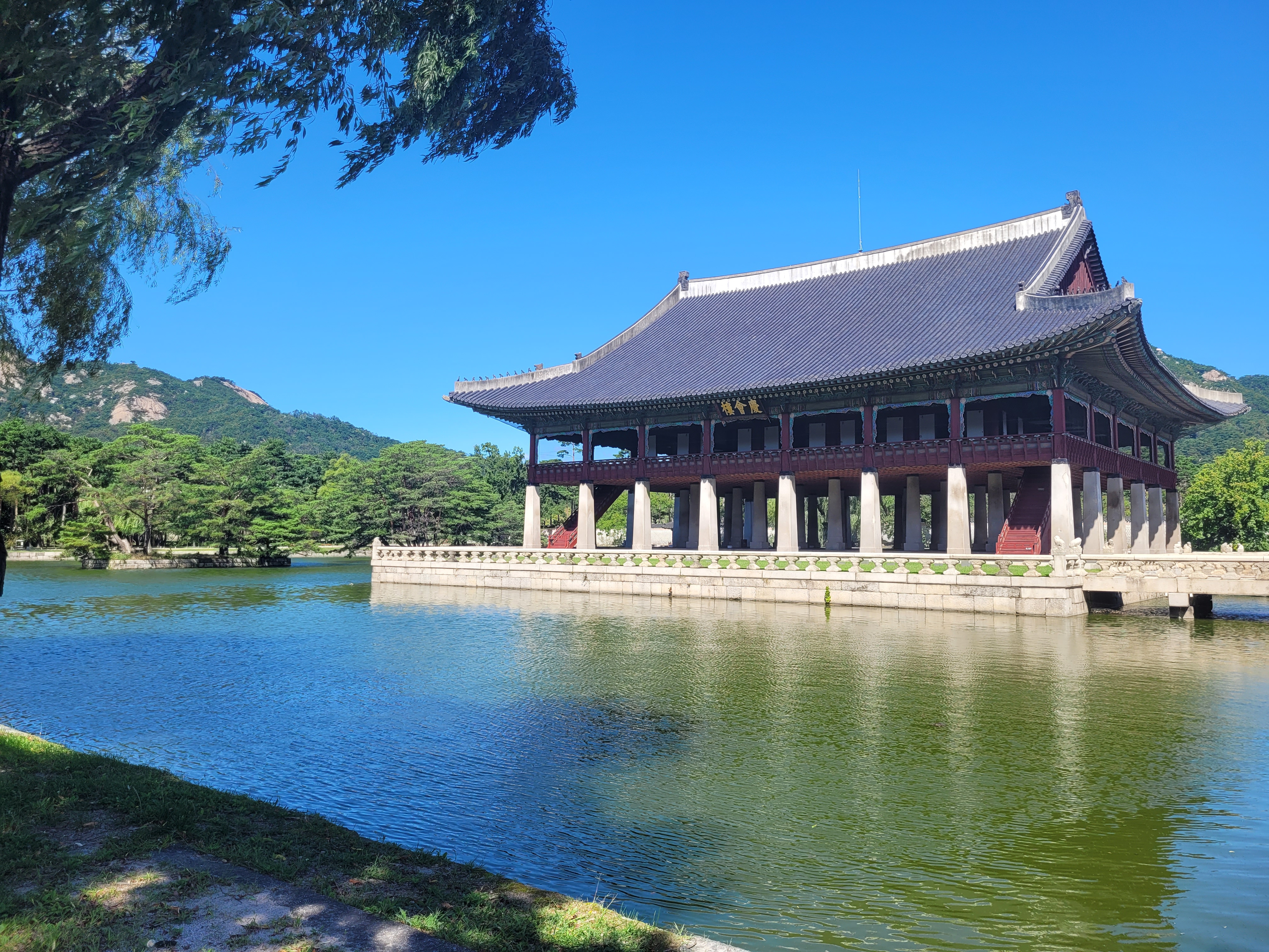 The first is Gyeonghoeru Pavilion and it served as the royal banqueting hall. It has a picturesque view over the little lake and of the mountains behind, and with a small breeze blowing through it’s a lovely peaceful location.