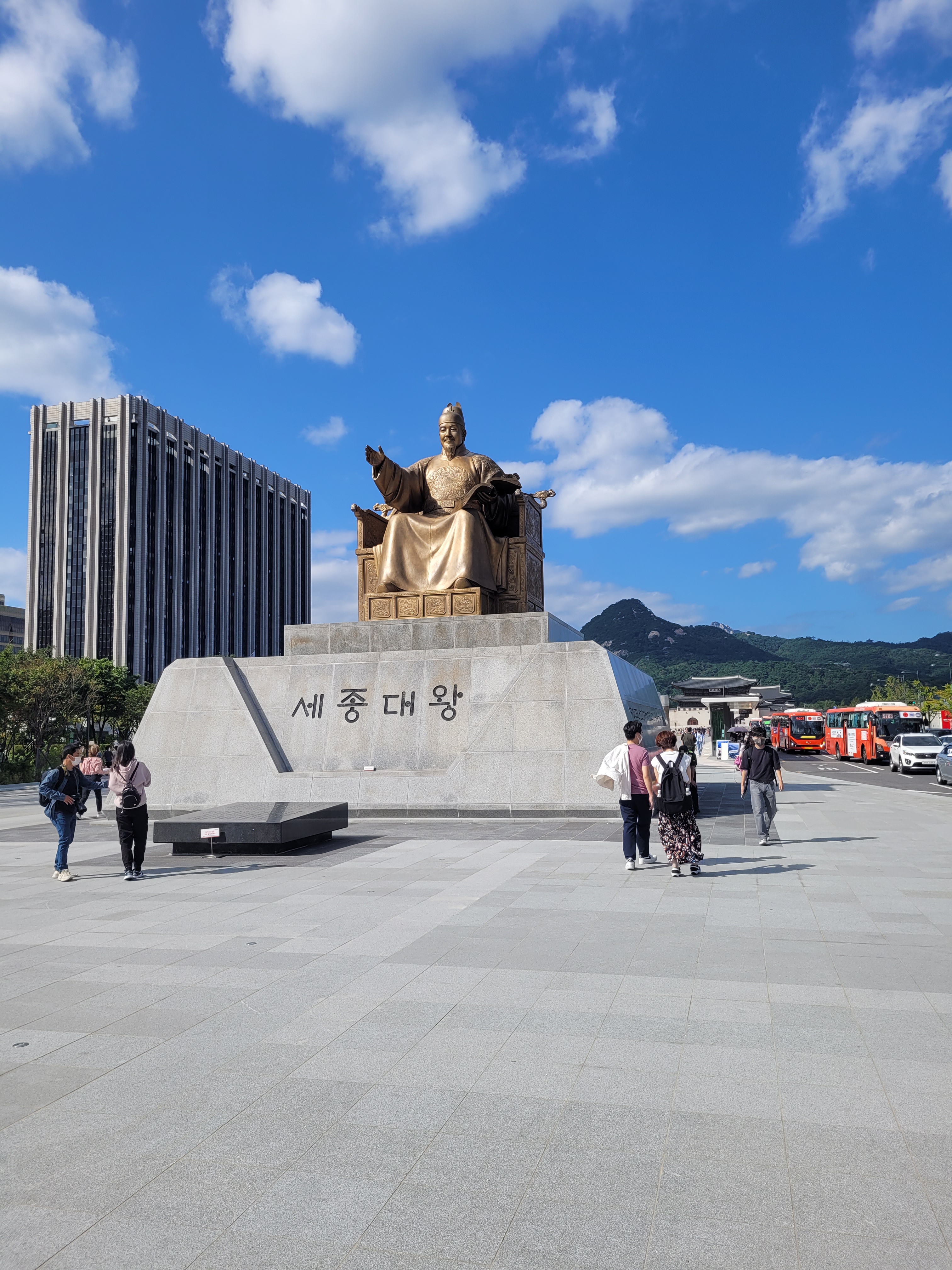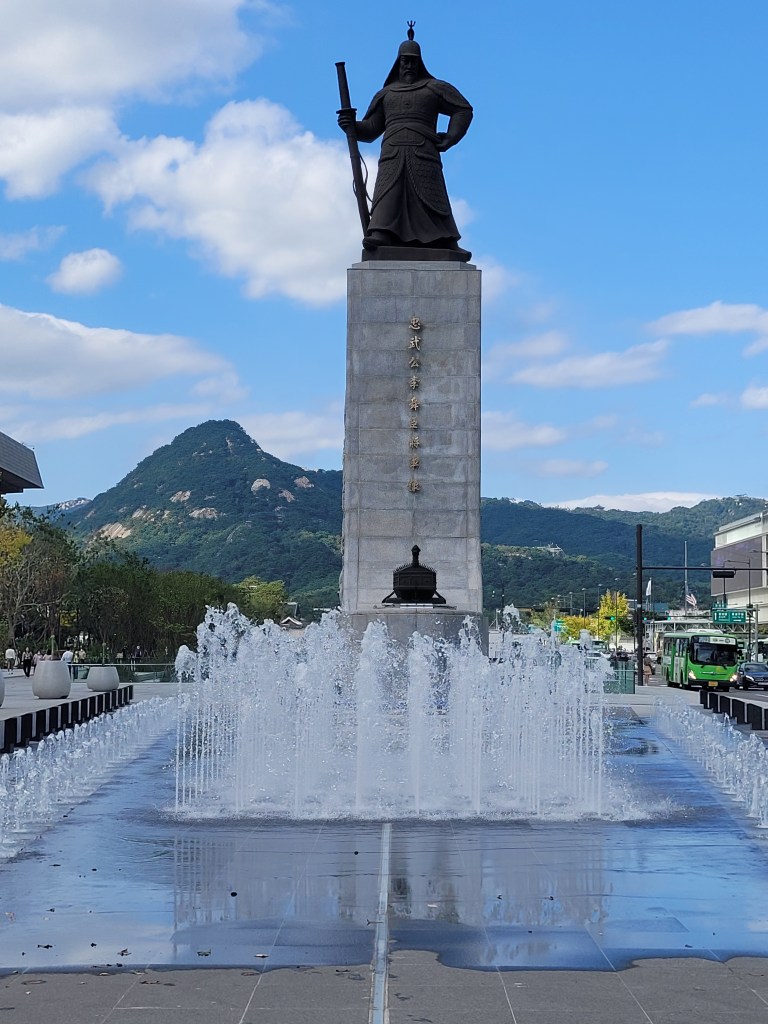A walk to end the day (why not, it’s not like I ever do that) and I leave the palace and walk straight through the centre of Gwanghwamun Square which contains the very large and imposing statues of King Sejong the Great (we remember him from last time, right?) and Admiral Yi Sun-Shin (who bested a lot of Japanese in the Joseon era). Anyone who has watched The King: Eternal Monarch will recognise the second statue for sure.