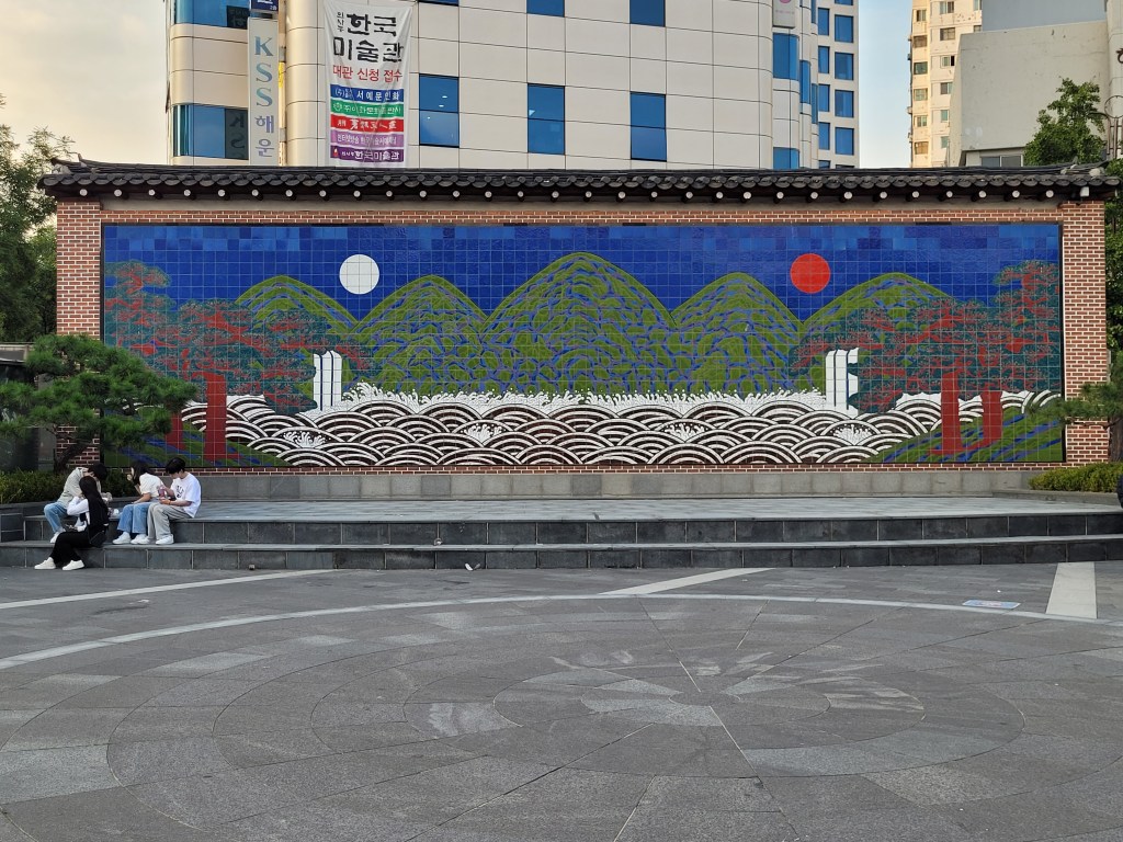 If you aren’t aware, in the evenings at Banpo Bridge starting at 7.30pm, and roughly every half hour, there is a display of water cannons coloured with lights shot from the side of the bridge with a musical accompaniment. If you have an hour to spare in the evening, I recommend it as something different and relaxing to do. I also advise bringing some food and drink. Which I didn’t, because I plan poorly like that. But I still enjoyed it. As a further bit of advice, I then recommend walking across the bridge to go to the subway station on the other side of the river, because you then get to see the fountains from the next show from underneath, which is also a bit of fun, as well as checking out the boats on the river.