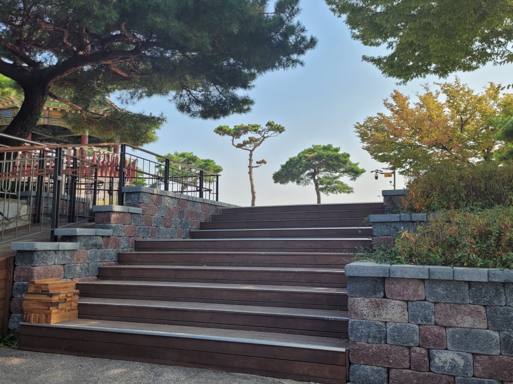 Of course, I had other motivations for coming here, kdrama related ones. I knew you guessed that already. For those of you who have watched ‘That’s Okay, It’s Love’ (and I know you don’t even need to be told it has Doh Kyungsoo in it), this was where they filmed some of the evening scenes. And it is easily recognisable, I crested the hill and immediately twigged the stairs and bench the filmed in front of. And that made me happy. As it does.