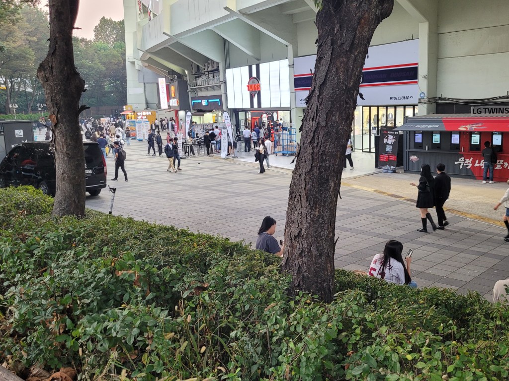 So climbing a hill wasn’t enough in this heat for me (yes, still hot here), I decided to walk down through Seoul Forest (second time), had dumpling soup dinner at a Korean restaurant (I got brave cause it was practically empty and reckoned they wouldn’t turn me away) and catch the subway (love the subway so much) and go over to Jamsil Stadium. Well, just because I wanted to look at it. So I did. Turns out they were having a baseball game there this evening.