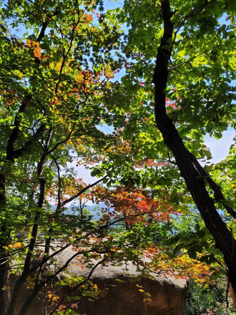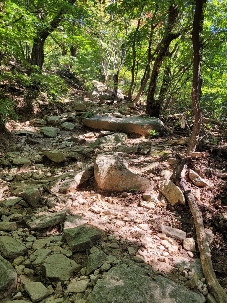 The path I planned to take, well, it didn’t quite happen because once again having a basic colour-coded map and poor directional signs in the woods led to me adding a couple unexpected kilometres to my hike. I am glad I can at least read Korean though, because some of the signs and map names you can only figure out and match up if you can read Korean out loud, hear the sound of the word, and therefore work out the English equivalent that may be showing on the map or sign and vice versa (if that makes sense?).