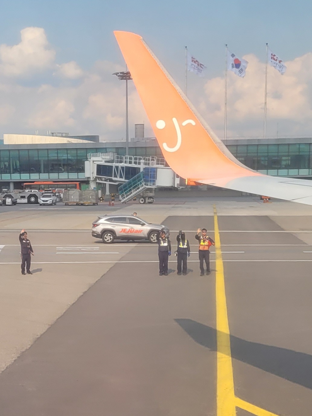 I also particularly liked that when the plane went to take off, the nice Jeju Air ground staff lined up and waved to us as we left (before turning and bowing to each other). Not just a one-time thing either, it was the same on the return flight – and yes, now prepared for this occurrence, I totally waved back to them.