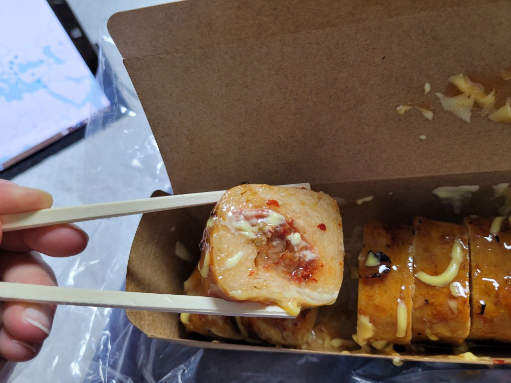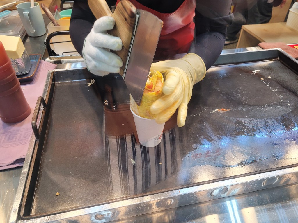 I end my day with a return ferry and bus trip, and a stop in at the market to try more food – following my Israeli friend’s recommendation from the other night, I took a deep breath and asked for something that I haven’t had before (which happened to contain the HOTTEST kimchi to date).