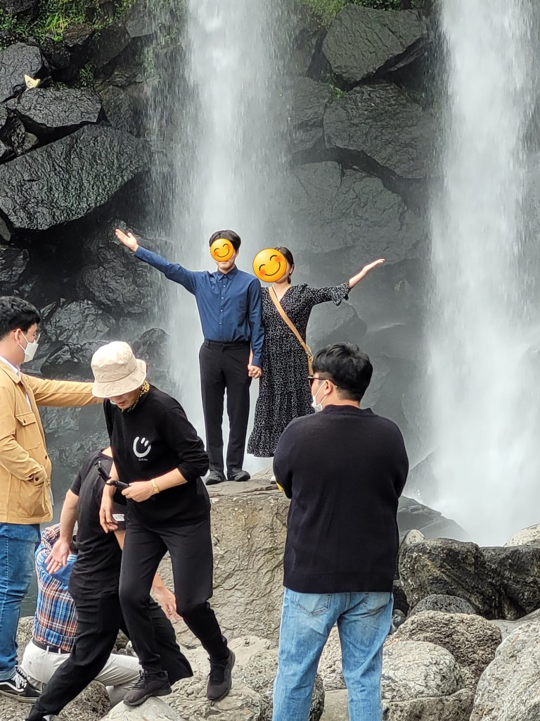Jeongbang Falls is apparently noted for being the only waterfall in Asia that falls directly into the sea, so that had to be worth a visit, right? Being practically on my doorstep and for the small sum of ₩2,000, I figured I may as well take a look. Overall, it’s a pretty waterfall. I can’t tell though whether I got more enjoyment from watching the waterfall itself or the parade of people attempting to take cool/romantic/exciting/adventurous/quirky/modelling (delete as appropriate) photographs in front of the water feature. No lie, there were couples in dresses and suits clambering over rocks in order to pose, looking like they’d just come from some high-end evening party. People here never cease to amaze me.