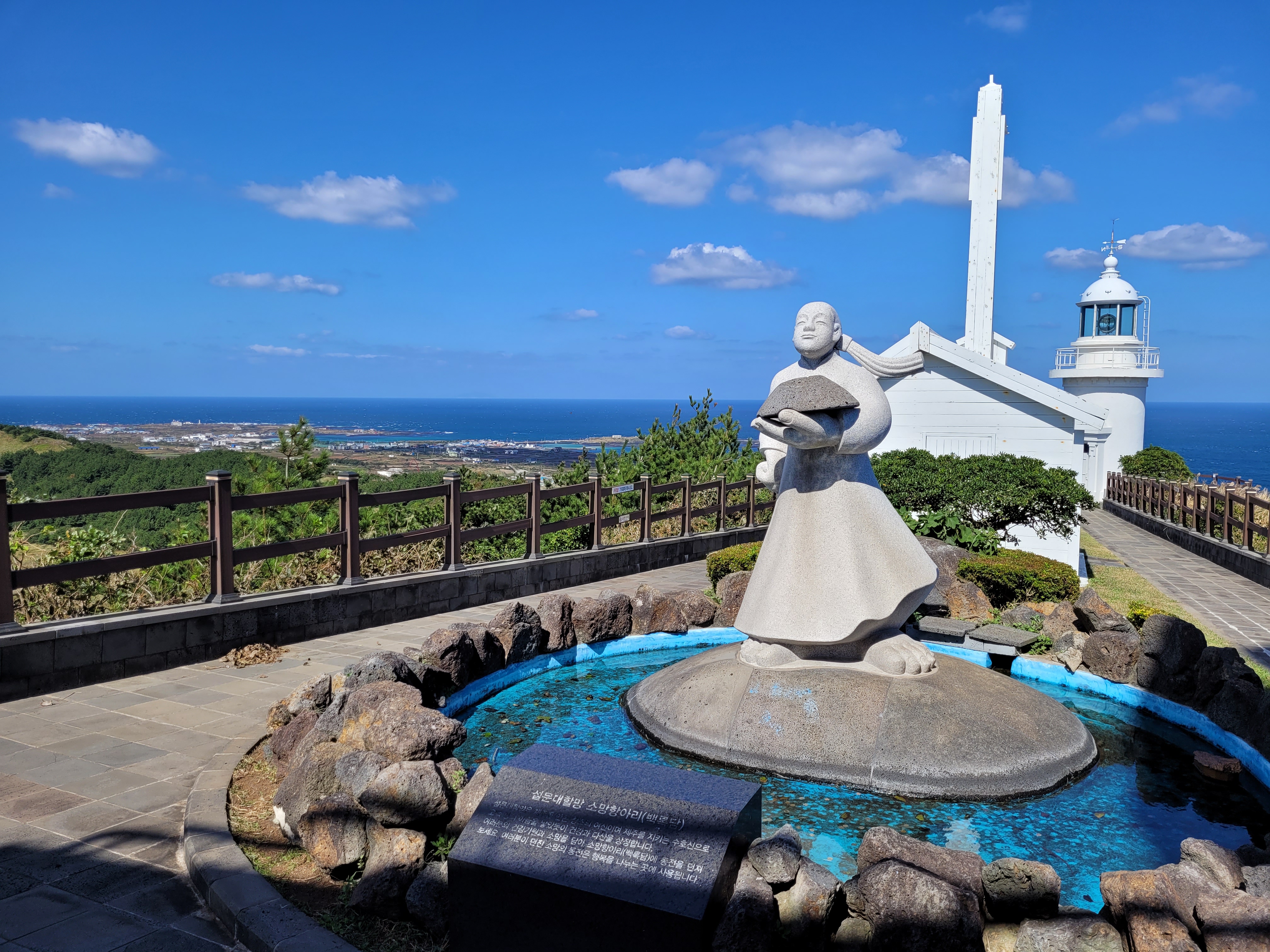 All around Jeju you will see artwork or statues celebrating the haenyeo, but to be honest if you want to see them at work, all you have to do is stare out off the coast and look for the floating orange buoys, each one is a haenyeo at work. I spotted many while walking the Olle Trail, and a certain points you’ll even come across the town ‘welfare centres’ where it seems the haenyeo come to start or finish their work day. Plenty of restaurants around the island are also labelled as ‘haenyeo houses’ where they serve the catch from the divers. (OK, I can’t go any further without a drama recommendation featuring haenyeo – Our Blues on Netflix. You’re welcome.)