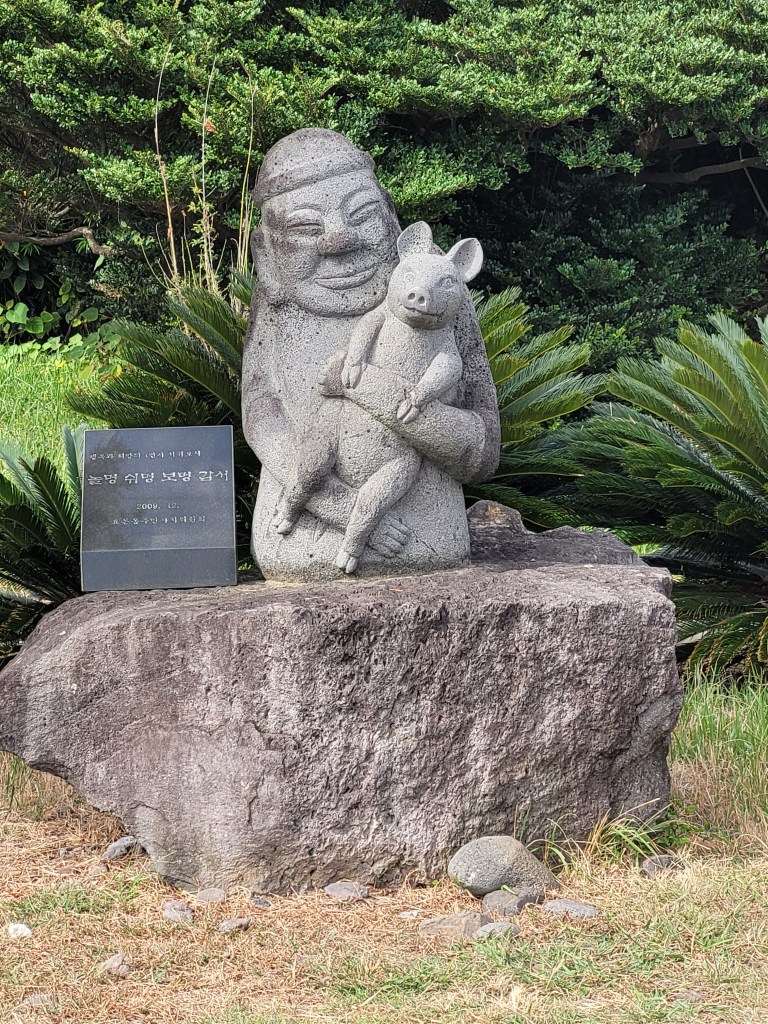 I had made the decision that I wanted to visit Jeju Stone Park as one of my last destinations. No, this isn’t a Korean Stonehenge, but more of an indoor/outdoor museum of stone statues depicting aspects of Jeju life, including examples of Jeju’s most famous figures, called Dol Hareubangs, that you find scattered all over the island. If you aren’t familiar with them, they look like this…
