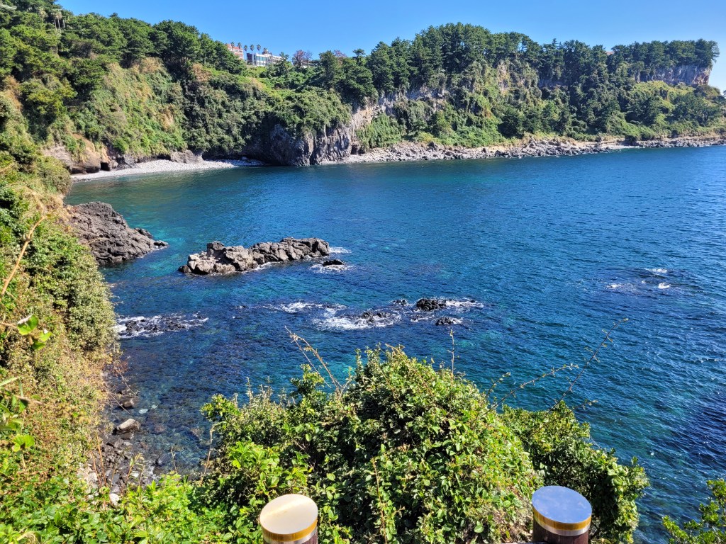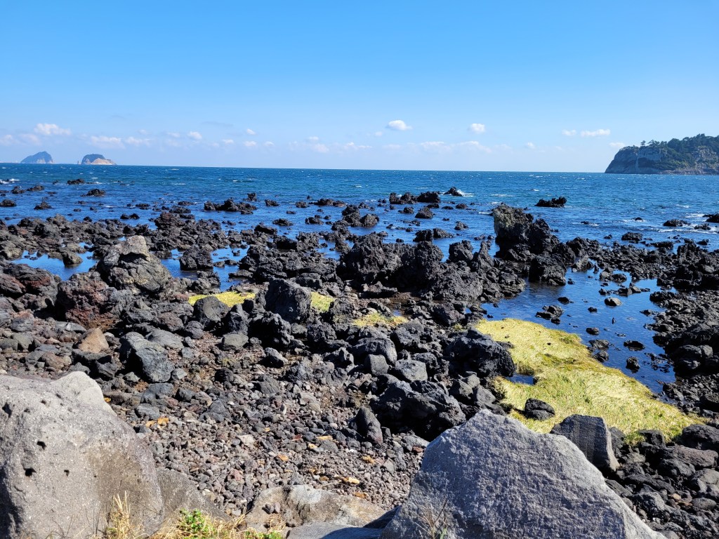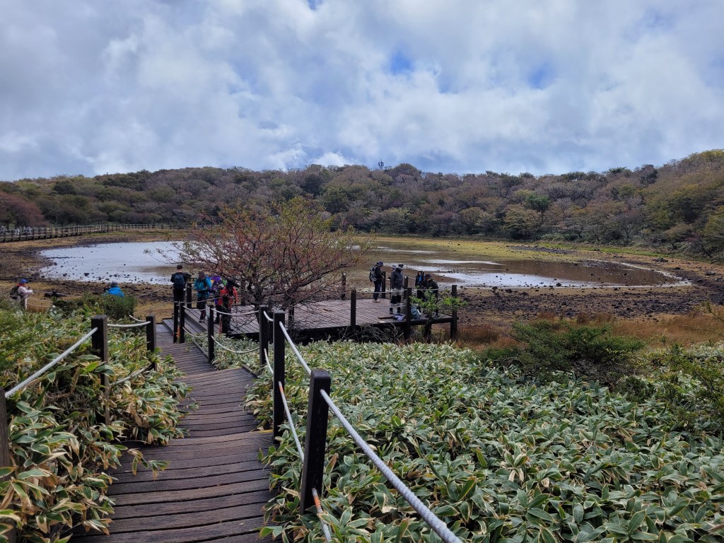 One is a volcanic cone lake and the other is a view off the side of Hallasan and if you see that shiny light off to the right, that’s the reflection of the sea!