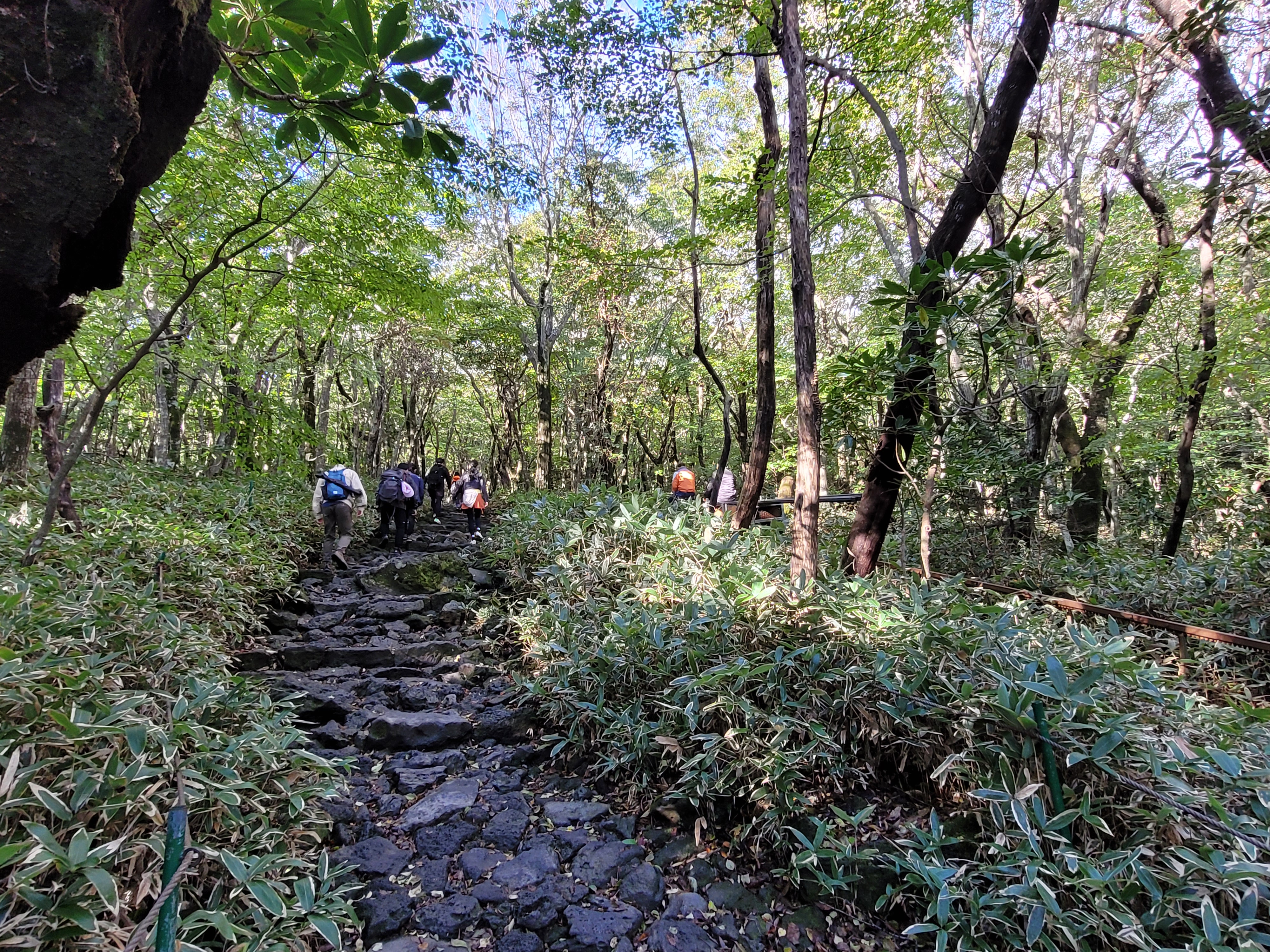 On arrival I found I had plenty of company on my climb. To summit Hallasan, there are only two trails you can take – Seongpanak and Gwaneumsa – the first trail allows 1000 people per day and the second is limited to 500 (these numbers are spread out at different times across the morning to prevent crowding). You need to book which trail you intend to use to go up, but you can actually come down either route. My plan today is to head up Seongpanak, a slightly longer but less rigorous trail with limited view as it’s forested, and then come down Gwaneumsa, the route that is very steep but has views over the valley.