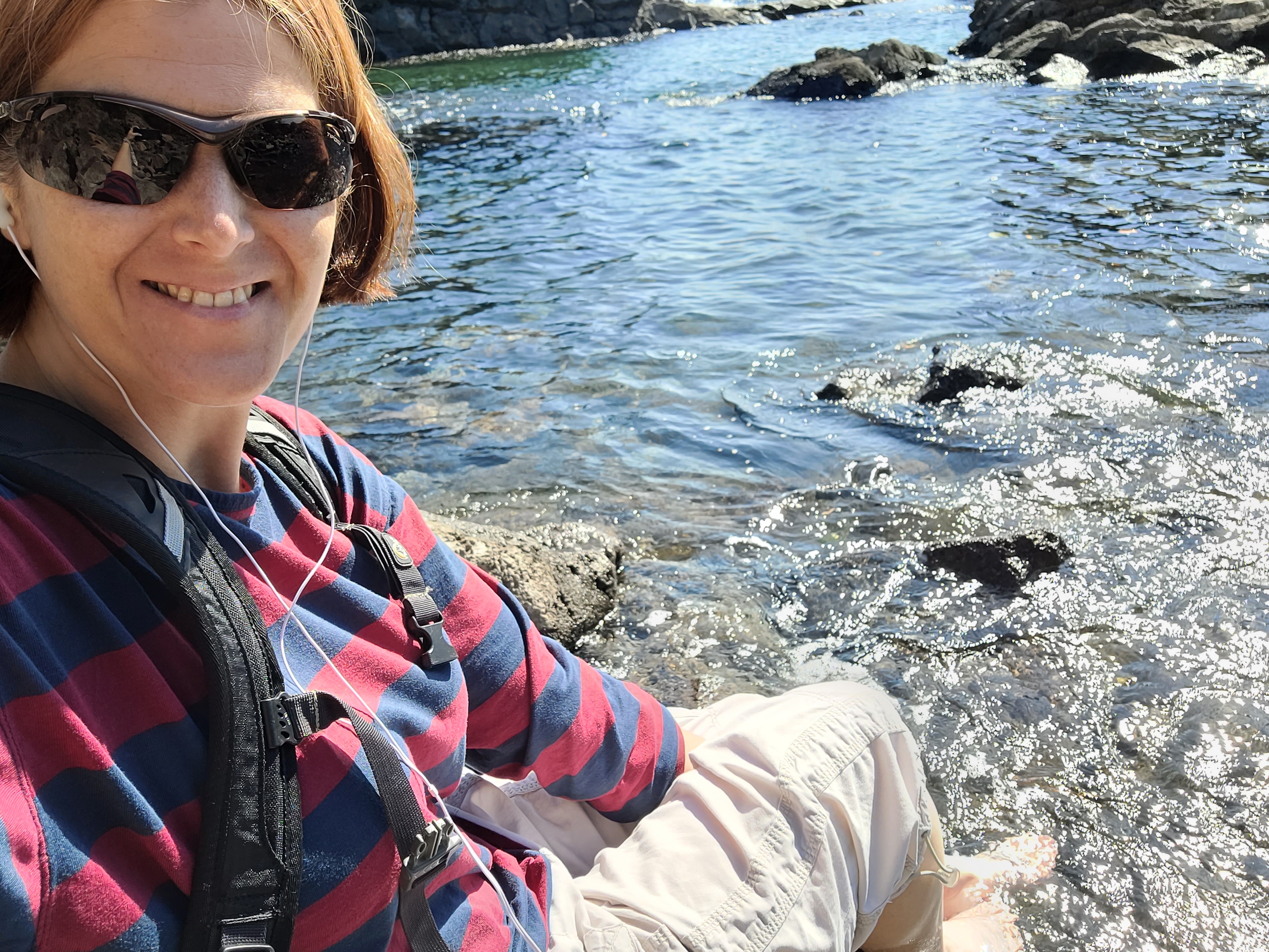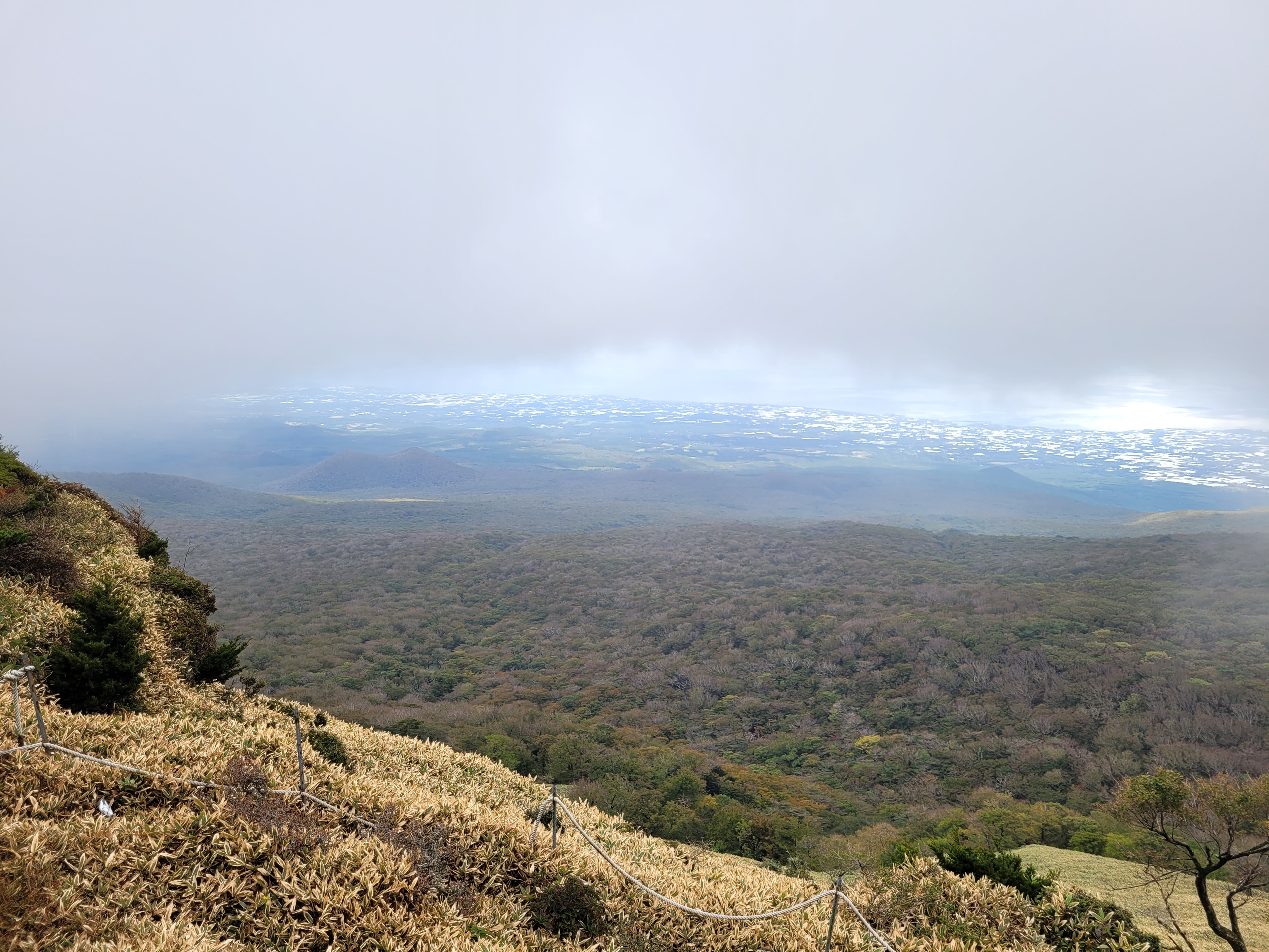 One is a volcanic cone lake and the other is a view off the side of Hallasan and if you see that shiny light off to the right, that’s the reflection of the sea!