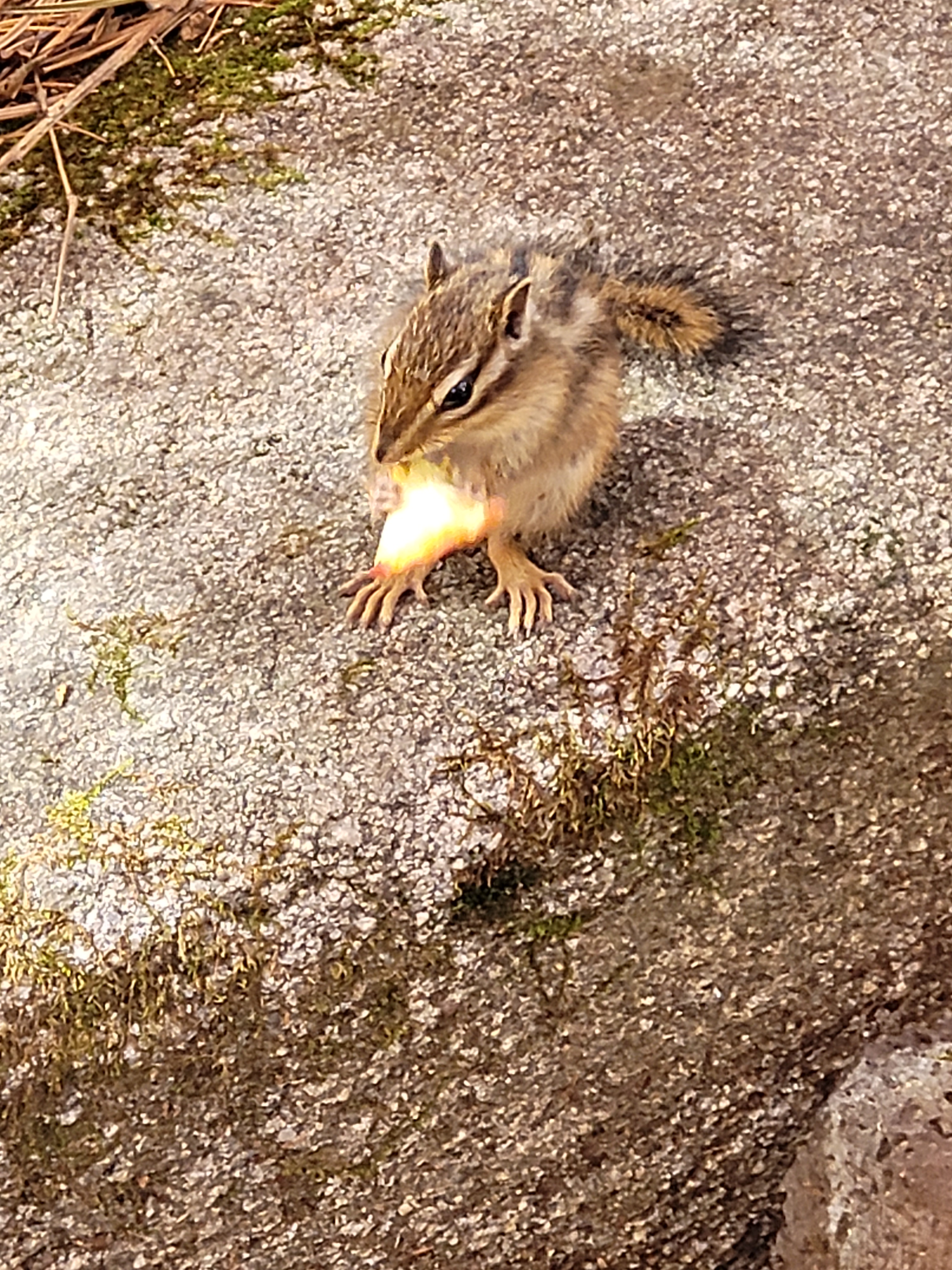 I am enjoying seeing wildlife here. Though not plentiful as such, I am seeing things that are maybe new or a little more uncommon to spot at home. My collection below (though you might not get it from the blurry pictures) includes: black squirrels, chipmunks, kingfishers, fish, nuthatches, and snakes. I spot a fair number of small birds (LBJ’s – little brown jobs) and am fairly surprised by how unfazed by people they are – it might just be my imagination but birds here seem less skittish than at home.