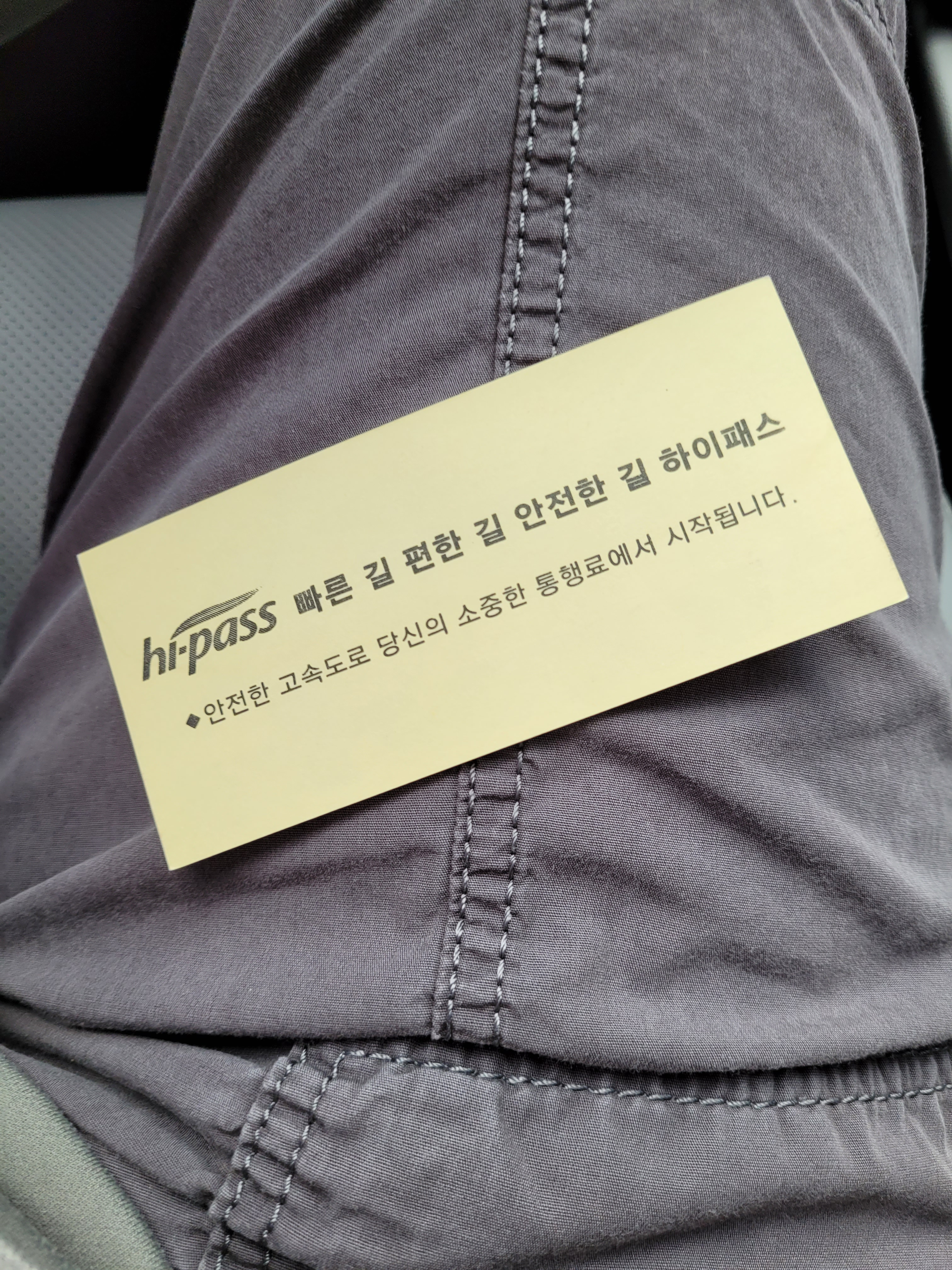 Finally, let’s talk tolls. I have opted mostly to use the expressway here so far as they are not only quicker, but just generally straight-forward in terms of driving. They come with tolls though. Not massively expensive (the most I’ve paid so far was ₩4,100 in one go – about $3.50 maybe?), but frequent enough that they add up. The big issue though is of course driving at speed, approaching a toll both that has only Korean writing on it and with 4-8 lanes to choose from. I’m going to be smug here – I did prep for this. I knew what I was facing. Or so I thought. The first two tolls – easy. I stayed out of the blue ‘hi pass’ lane and aimed for the cash sign (in Korean, but I can read that at least). My GPS is pretty good at warning me how much to prepare for the toll and at each booth I found someone waiting to take my money. However, after that point Korea just started screwing with me. I ended up approaching toll booths with no cash signs visible and panicked (turns out you go through truck weighing lane instead), I wound up at a booth with no person and just a touch pad and was only saved by a bit of quick thinking and my T-card close to hand – I tapped it and hoped it might work…and it did! And finally got to yet another booth with no person and no touch pad, instead it had a machine that spat out a ticket at me, but with no clue what I was supposed to do with it (turns out when you eventually exit the motorway you will find a manned booth and the lady calculates how much you owe after you give her the ticket – don’t lose it!).