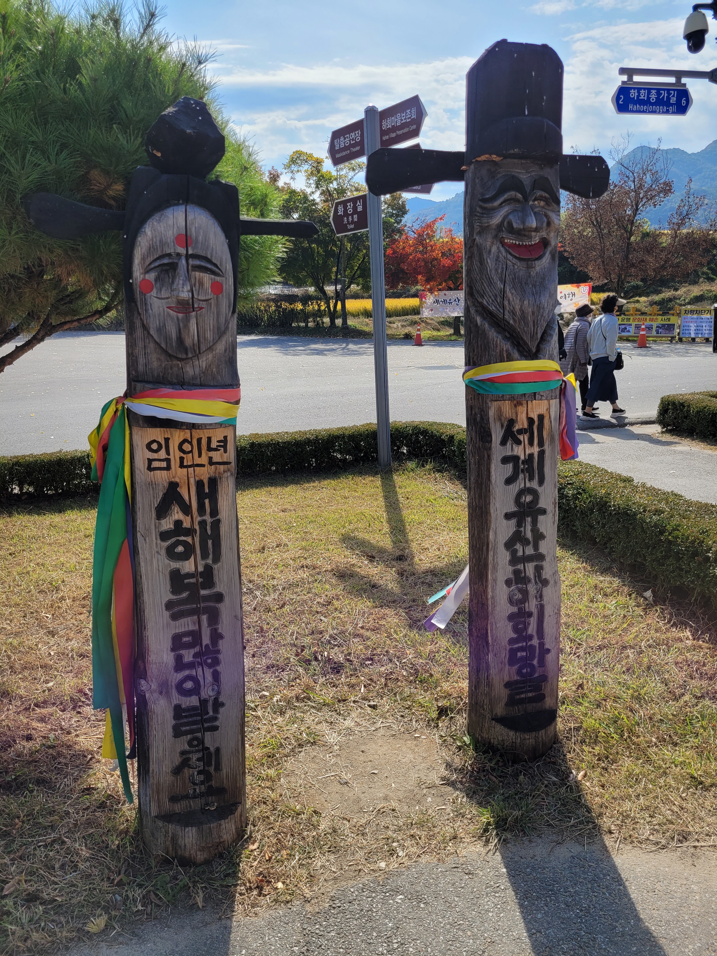 The village was settled some 600 years ago by the Ryu family, and members of the family have lived there continuously since this time. There are two well-known brothers from the village – one went on to be a great Joseon Dynasty Confucian scholar and the other was Prime Minister during the Japanese invasion in the 1500’s. The village today still contains lived-in hanok houses, both of the thatched and tiled variety; so when you visit, you should be aware you are actually in a proper working village with residents. Additionally, players demonstrate the traditional Hahoe Byeolsingut Mask Dance Play, with a performance every day for visitors to watch. And if my description here doesn’t do it justice as to why you should visit, take it from the UNESCO people, who have deemed it a World Heritage Site and describe it as β€œone of the most representative historic clan villages in the Republic of Korea and reflects the distinctive aristocratic Confucian culture of the early part of the Joseon Dynasty (1392-1910)”.