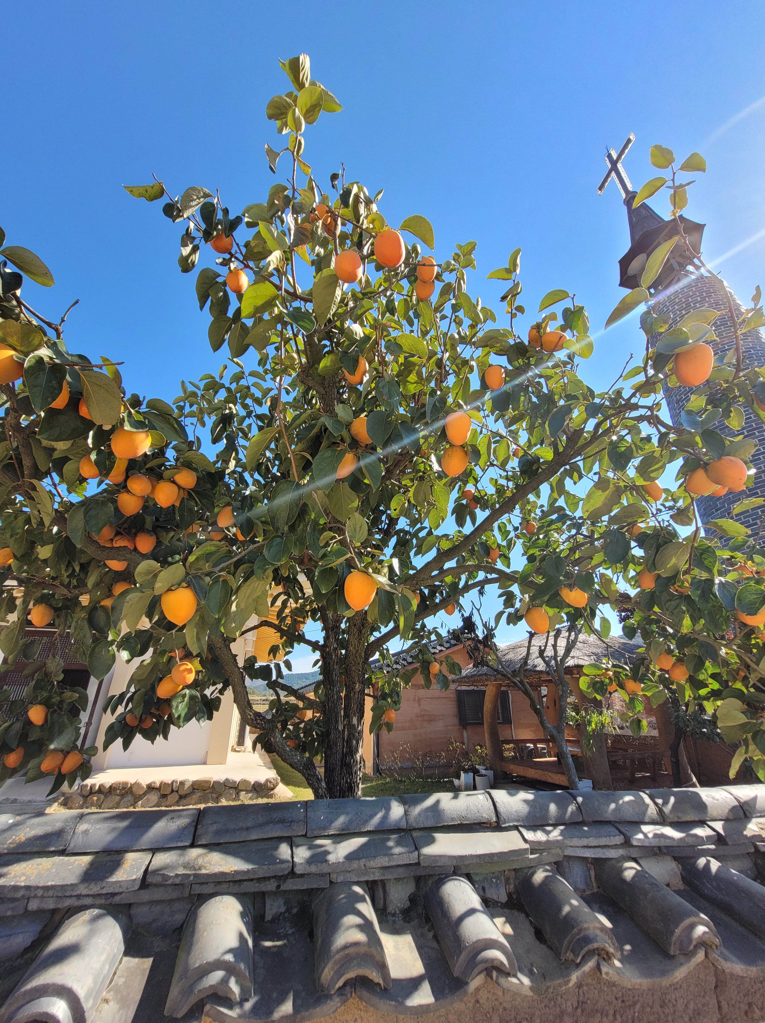 I am also becoming increasingly fond of persimmon trees. The fruits when ripe are actually red, but most I have seen hanging are still an intense orange colour. They also interest me because the trees I’ve spotted always seem so sparse of both leaves and fruit, which I find quite odd. I have recently been watching a drama (If You Wish Upon Me – Ji Chang Wook looking particularly fine in this I have to say) and an old man in the show wanted to see his persimmon tree bearing fruit one last time before he dies, and so good old JCW goes out and makes fake ones for the tree, but when I saw it I thought how silly because he only puts a handful on the tree; but in reality I can see this is actually exactly correct, cause that’s what I have now observed myself. Funny, the things we learn.
