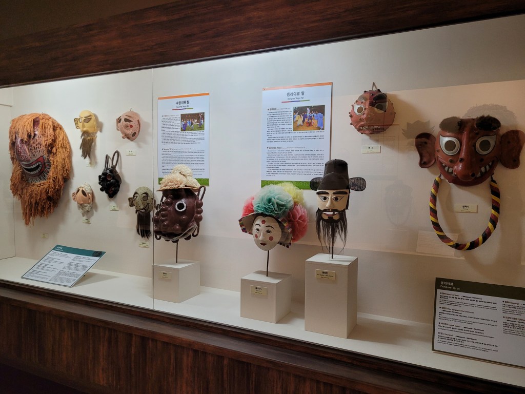 The icing on the cake after watching the dance was being able to pop into the mask museum on site, where there are fabulous and fascinating displays of masks from various regions of Korea with explanations as to their use, as well as masks from other countries as well making the museum a full, enriching, and highly recommended experience.