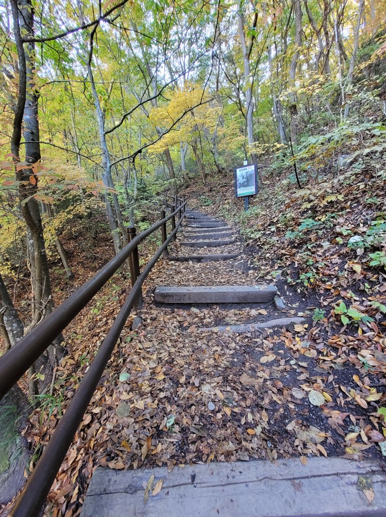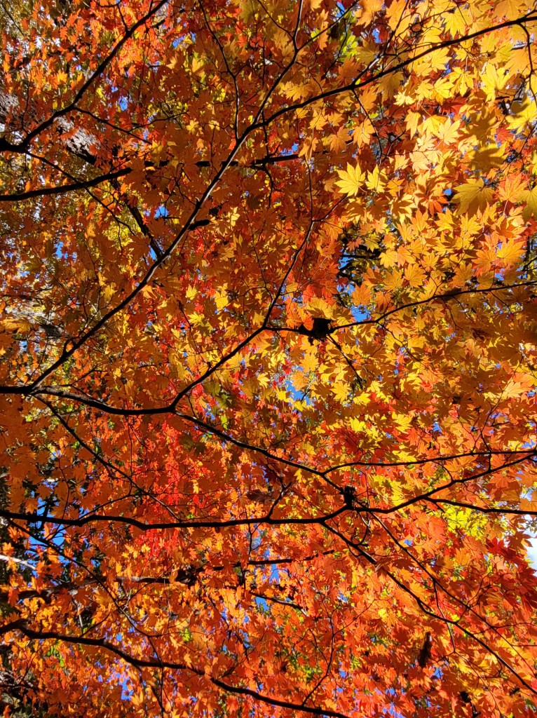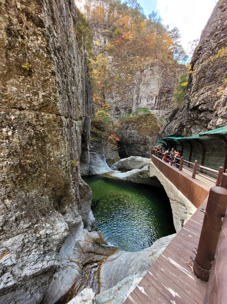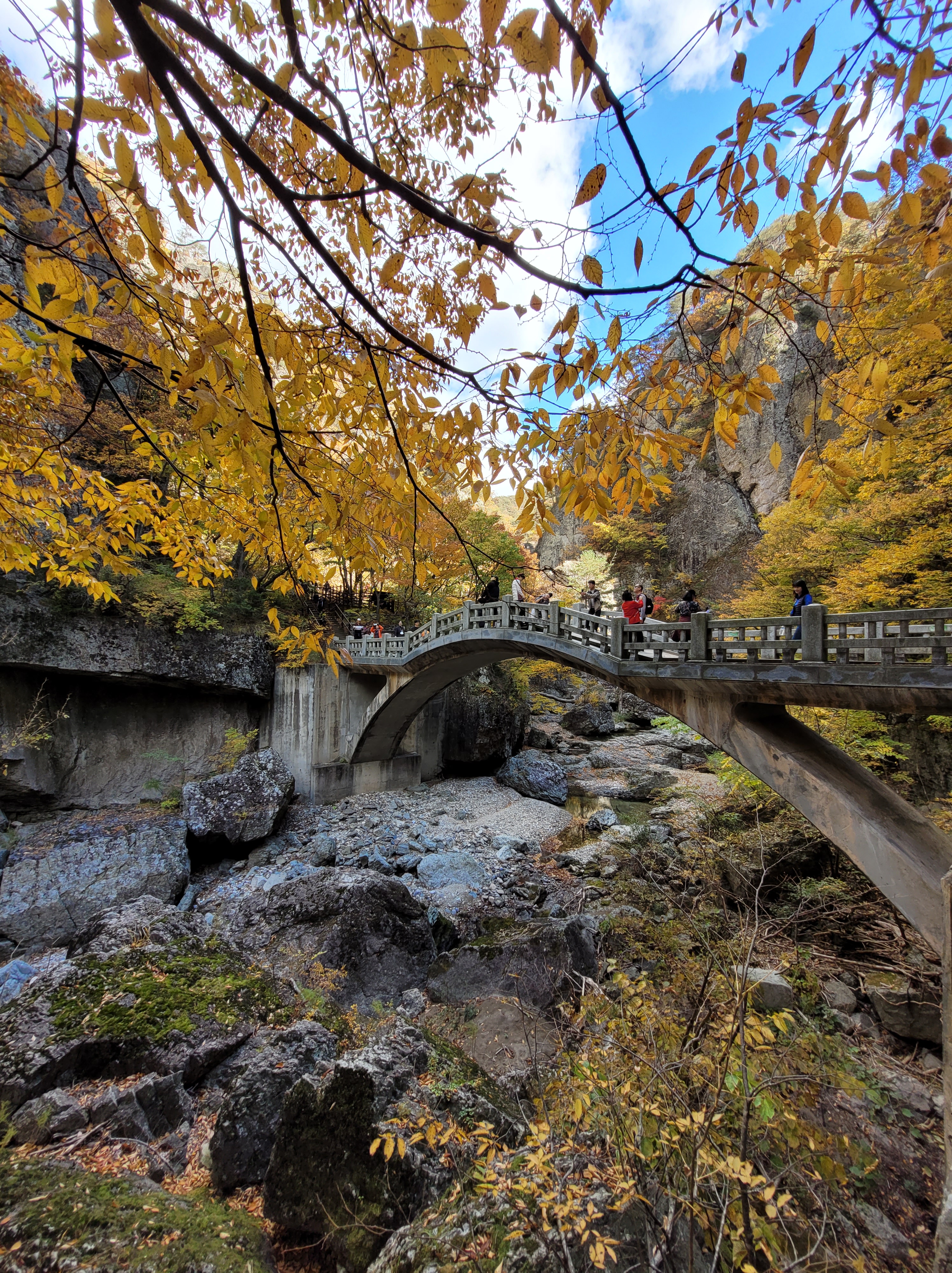 On I go and the further I hike, the prettier it becomes, turning mostly into a forest walk which I appreciate. The colour of the leaves continues to astound me. At home I think we get a really pretty bright green spring foliage, but it certainly doesnโt beat the colours I am seeing here in the autumn in Korea โ this is tremendous โ natureโs artwork for sure.