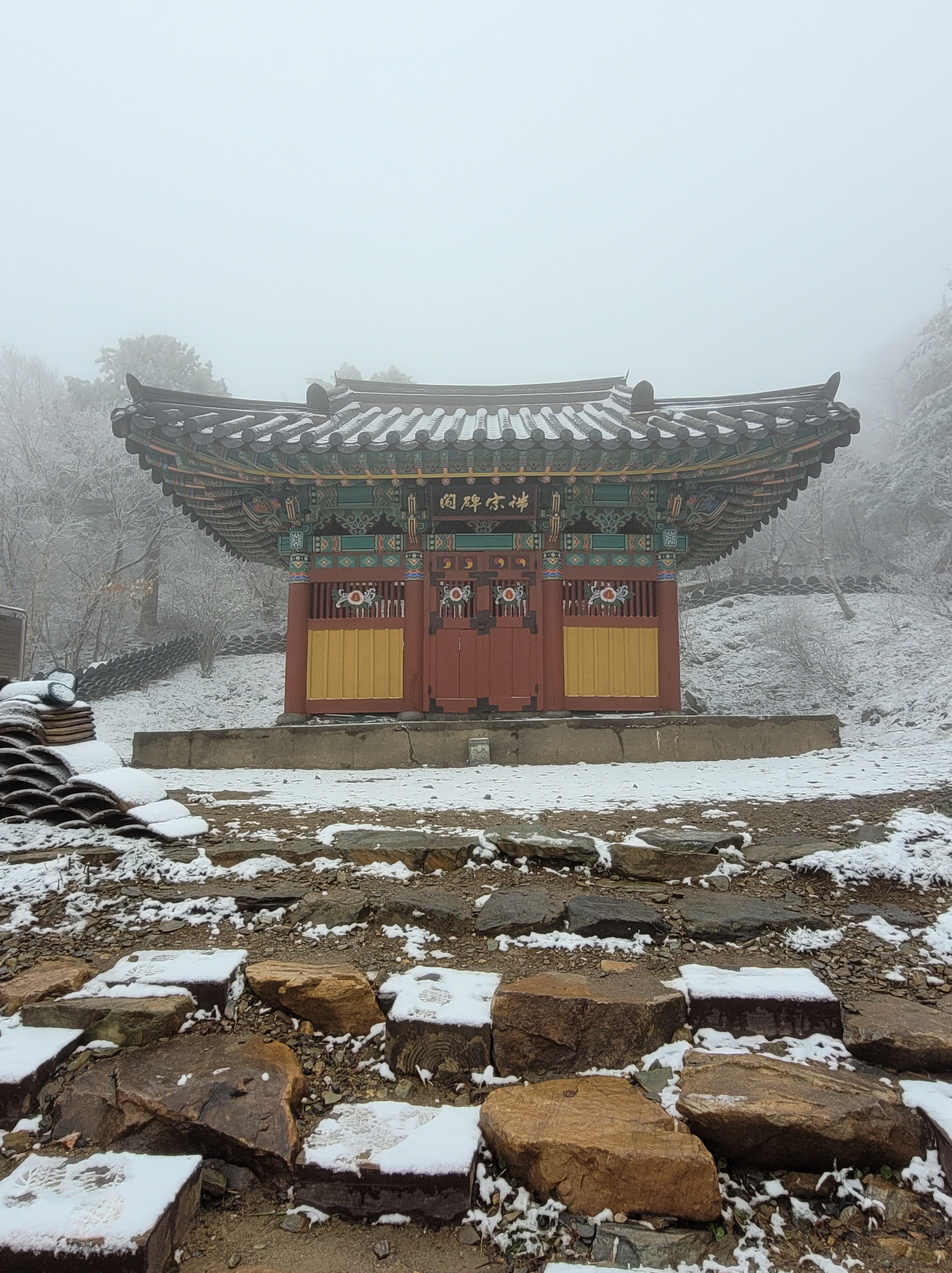 This monument house contains the epitaph for King Danjong, who was dethroned and exiled, and thought to now be the mountain deity of Taebaeksan Mountain; with sacrificial rites held for him every year by locals on 3rd September. What I found particularly interesting about this pavilion is that the epitaph on the stone inside was written by one of the monks at Woljeongsa Temple in Odaesan Mountain โ the temple I had visited and liked so much on my hike through the national park there. I appreciated having some context and a link to the information I read, along with the feeling that I havenโt just been aimlessly ambling across the Korean landscape, but have obviously been learning and absorbing things along the way.