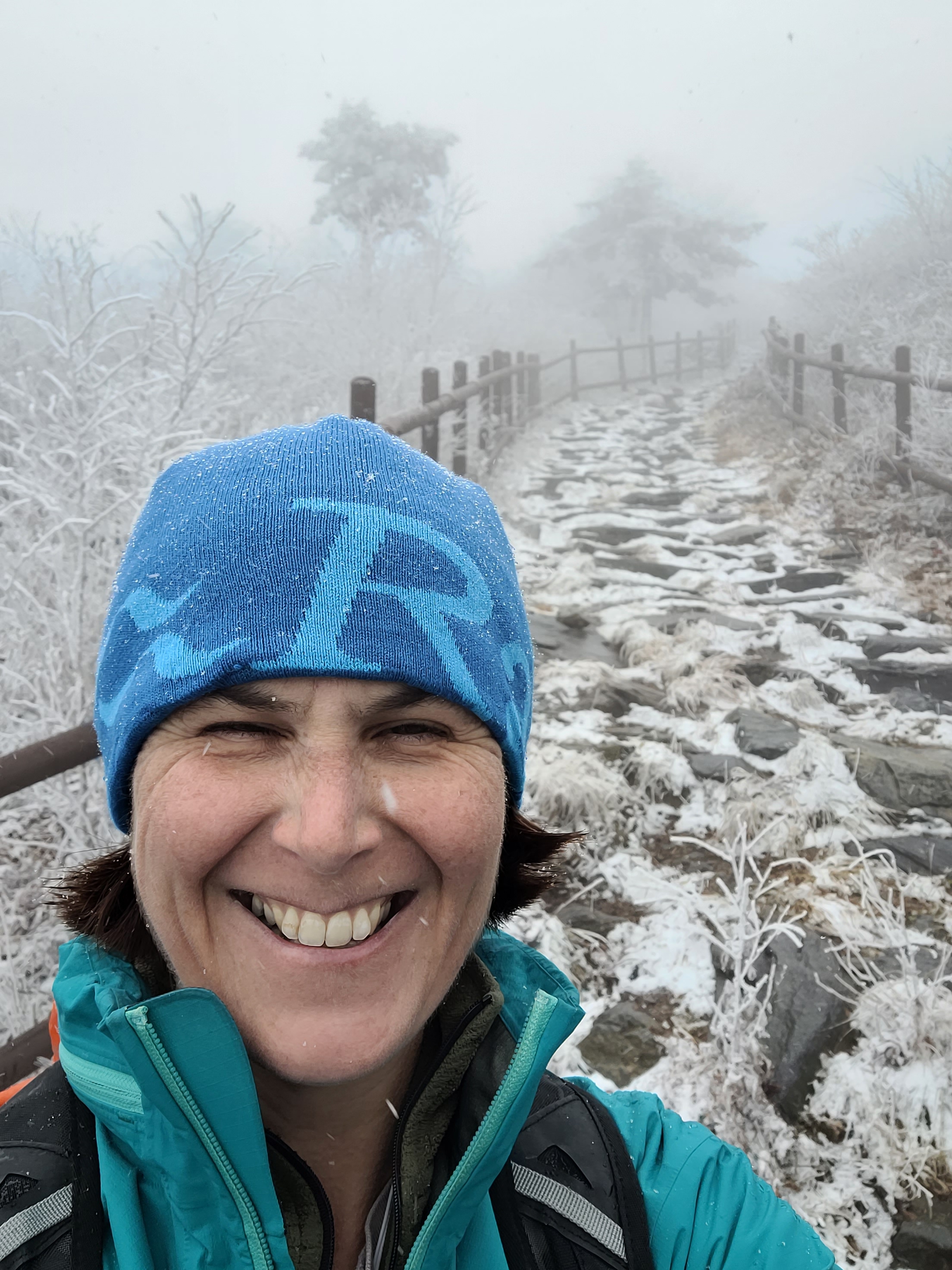 Step by step, I leave my magical winter wonderland behind and descend back down into the realm of normal weather. You simply wouldnโt have a clue what was going on up there unless you hiked in to it. Itโs like Iโve just been given my own secret world. And that makes me all warm and glowy and ecstatic inside.