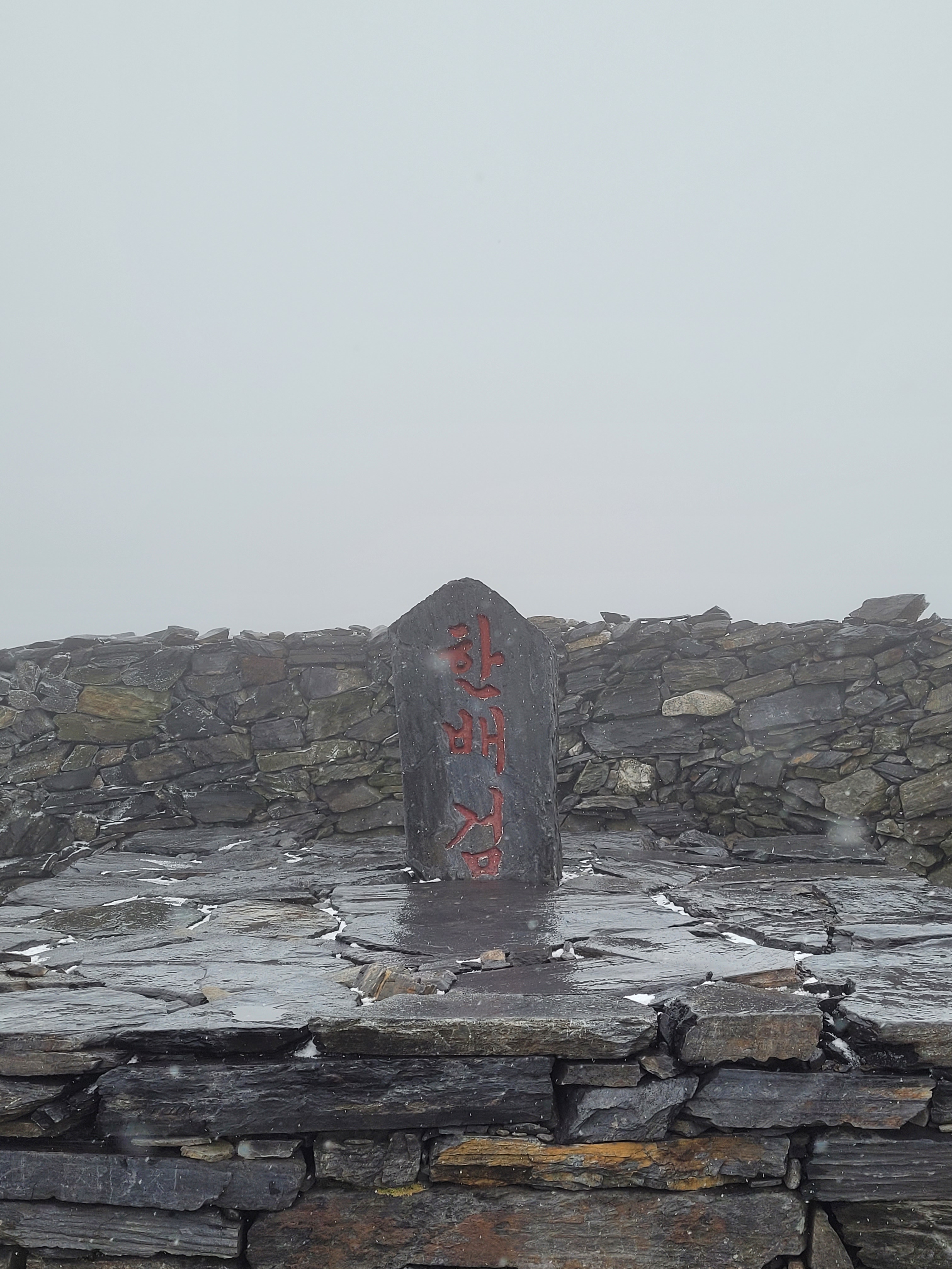 A surprise awaited me at the peak (as if I havenโt been surprised enough by today already). I knew that I was aiming for Cheonwangdan Alter at the summit, but in reality that meant very little to me. I had no idea what that may be or look like. On my travels I have come across various shrines and the like on my mountain treks, but these can be anything from a small pile of stones to a massive plinth โ you just never know what youโre going to discover.
