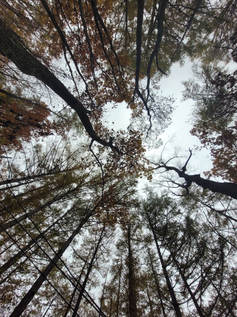 So enchanted I feel, I decide to stop on the way down on a rest platform I saw on the way up to decompress. I shrug off my pack and throw myself flat back onto the platform and simply lay there letting the tiredness of my hike seep away while staring at the treetops.