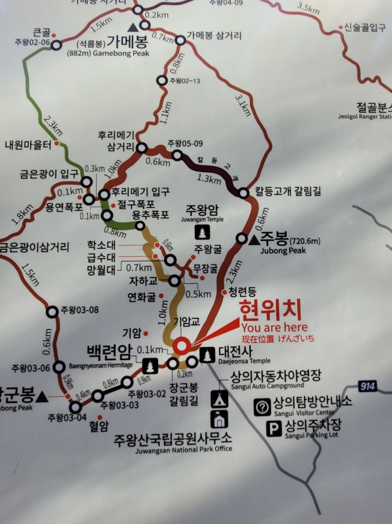 Jubong Peak at 720m is our destination today and the first point of interest is that this gets to be a circular hike. Unlike most of the walks I have done so far which are mostly straight up and back along the same trail, today there are a couple paths that converge on the mountain, meaning you can choose a variety of courses to take. This is always a good thing in my opinion.