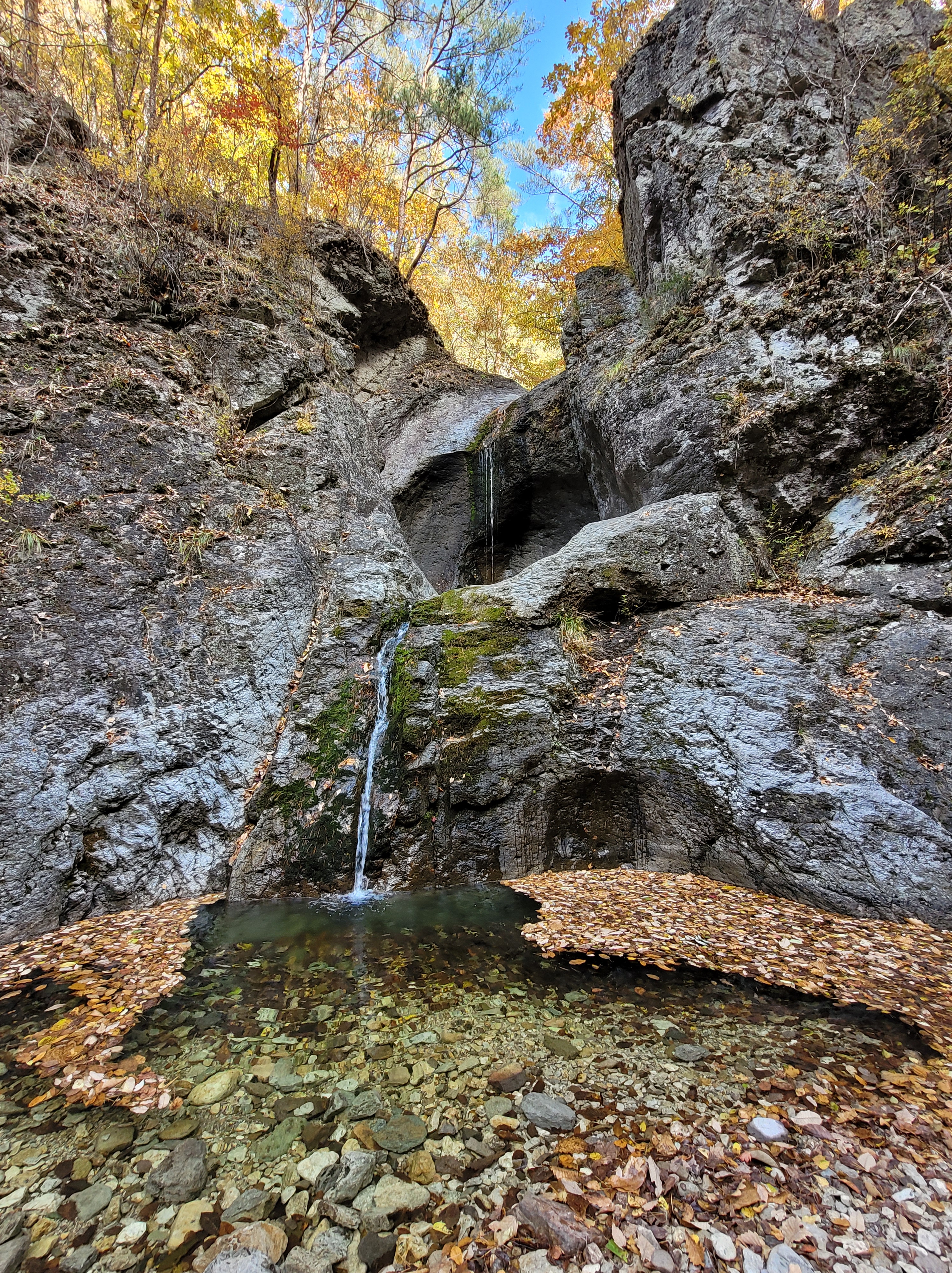 As I slowly descend I find myself delivered into the heart of a valley, complete with a range of water features, and a completely new perspective of the sheer size and scale of the rocky cliffs surrounding me. Itโs breath-taking and awe-inspiring and I just stand for a little to take it all in.