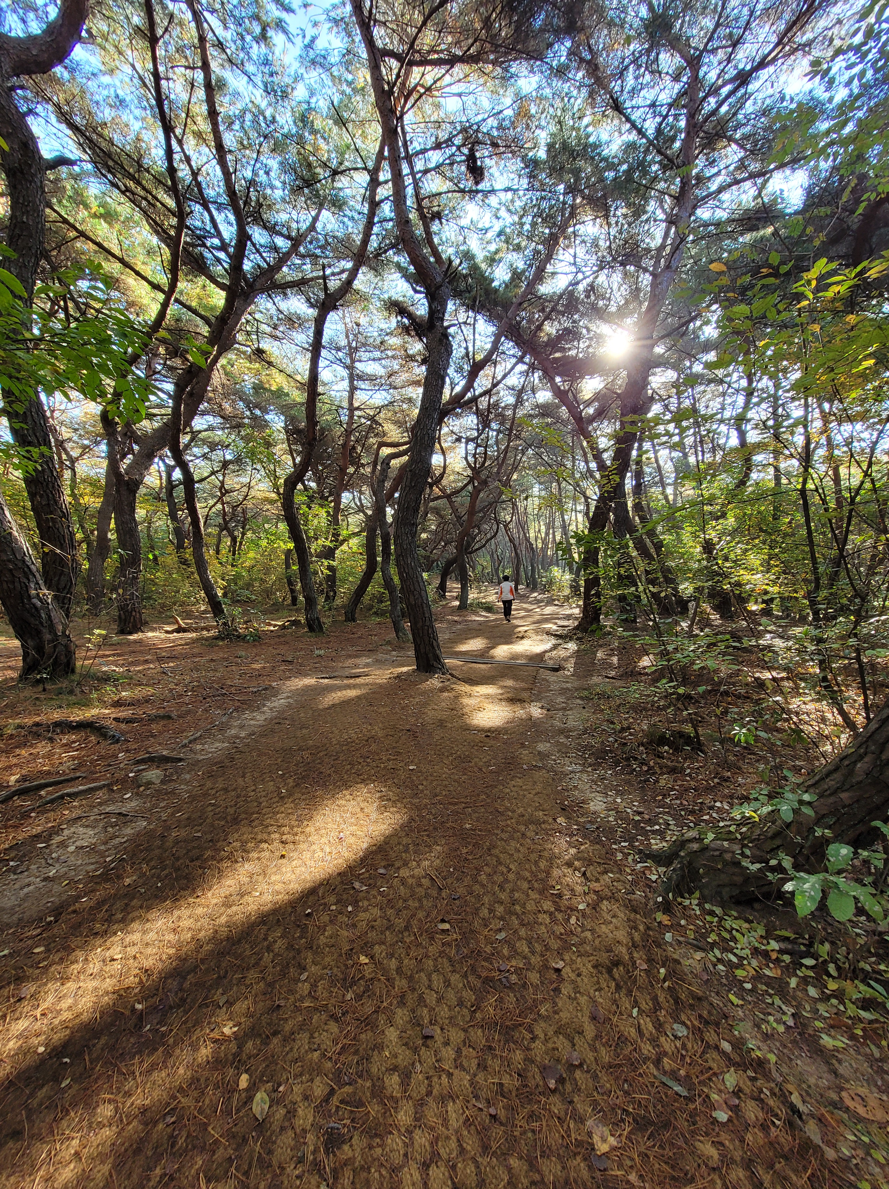 I started the day with a smile and a good feeling thanks to the very sweet lady ranger who welcomed me at the beginning of the footpath, and who happened to be peeling an apple and therefore offered me a slice to take with me before sending me on my way toward Geumobong Peak (468m in case you are interested).