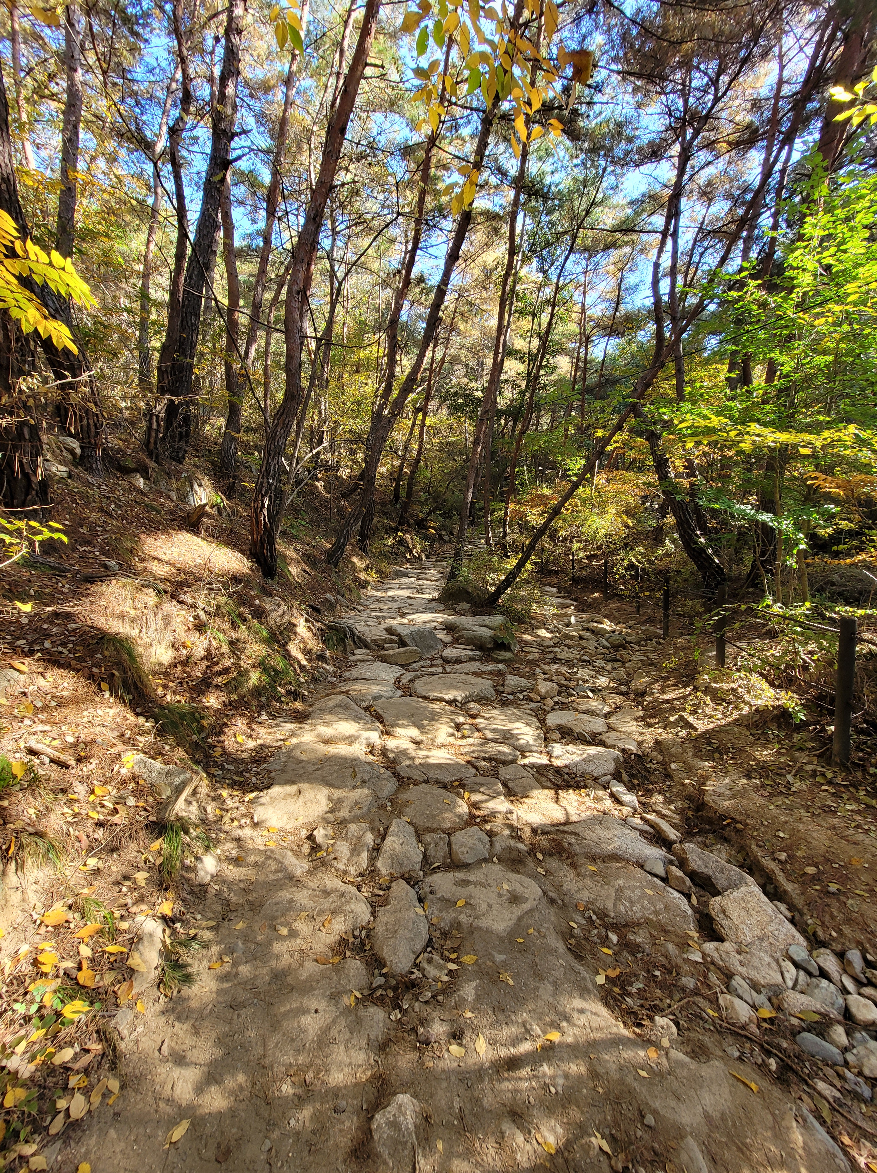 The path today is nice in terms of being moderately graded, though it does have a little bit of danger factor given the rocks and slippery leaves combo, and you know, my snake fears on a sunny day with basking on rocks and camouflaging with the leaves.