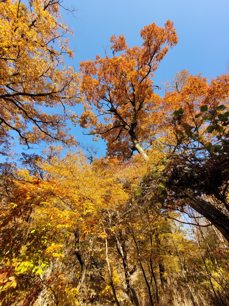 Today’s hike is fun, just really fun. The leaves put me in an immediate good mood, and there is the added bonus that when I finish hiking there is a temple to look around, which I always enjoy.