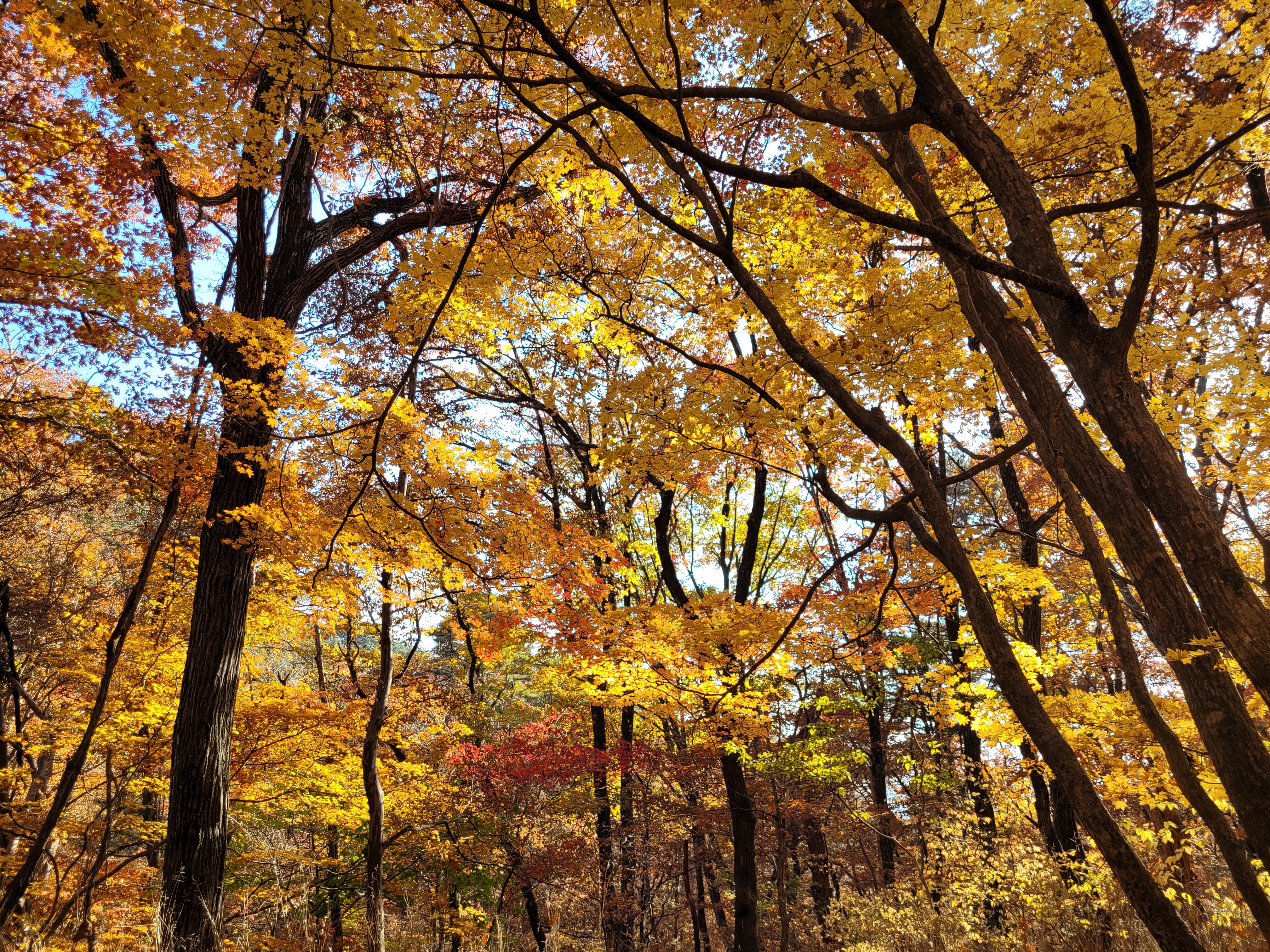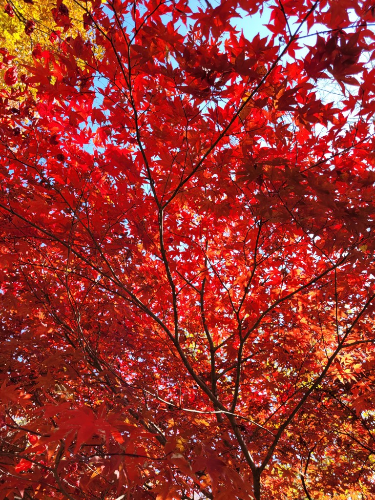 On my way to my new accommodation, I stop and spend the day at Gayasan National Park. This park takes the award for the best autumnal leaf display. I have arrived right when the colours have hit their peak, and it is a veritable feast for photographers. I personally can’t take more than a few steps before having to whip out my camera again.