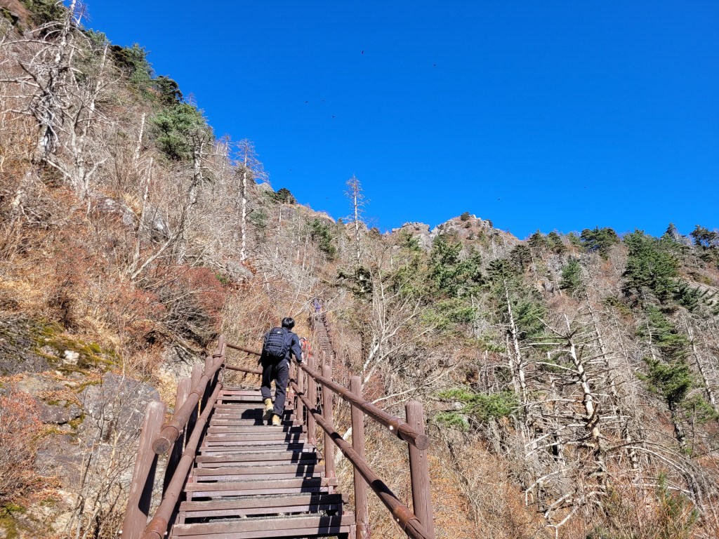It was a satisfying feeling to find a decent sized summit stone at the top, it felt fitting for the occasion. What was more exciting to me though was seeing the ridgeline path running in both directions from Cheonwangbong heading deeper into the park. I could feeling the curiosity and desire to find out where those trails might lead bubbling up inside of me, reminding me of the first time I laid eyes on the AT. Jirisan National Park is one of the few parks in South Korea where you can go and complete a proper 3 or 4 day overnight hike, complete with stays in the park shelters along the way.