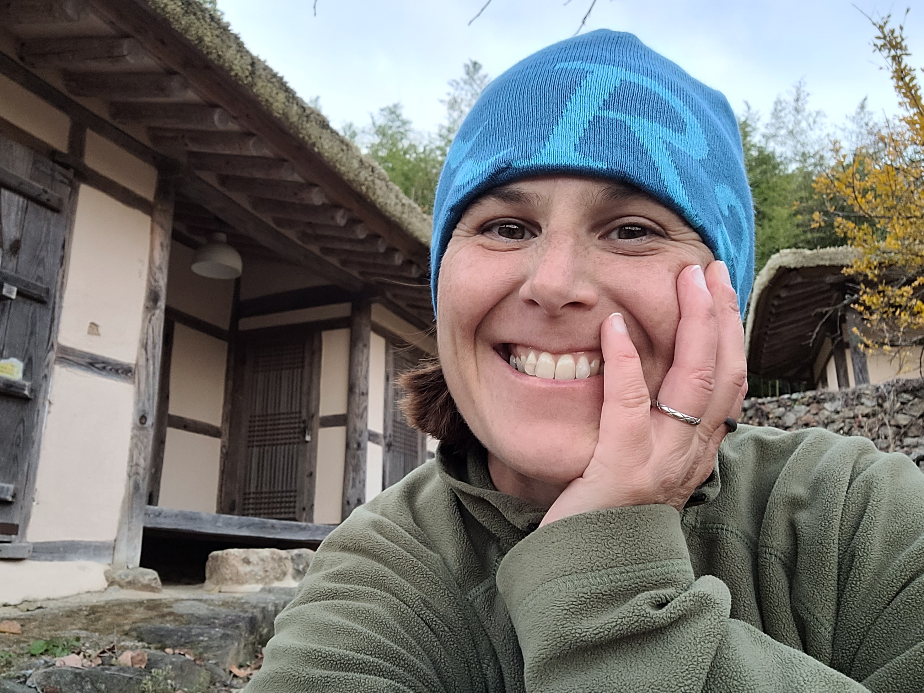 I am in a hanok village / business retreat. The complex is filled with old hanoks which I guess where once a village maybe, but there are now also a couple large buildings too which form an industrial size kitchen and laundry, and a business centre workspace.