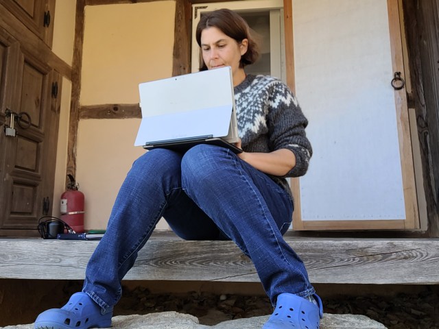 Amidst my keyboard tapping, I heard the scuffling of someone wandering up the roadway and looked up to see that a middle aged Korean lady had appeared, stopped, and was staring at me sitting on my porch. She called over and greeted me in English and I waved a friendly hello back.