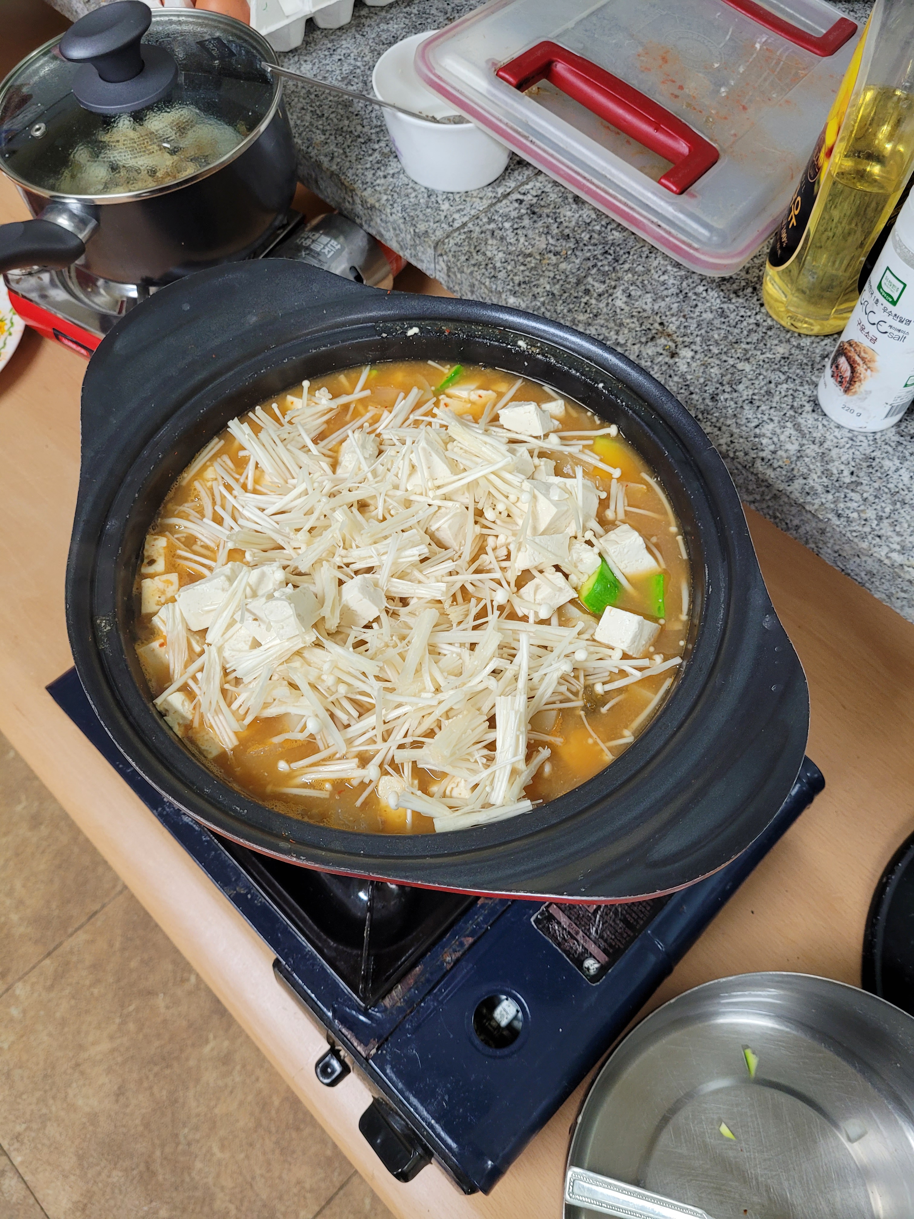 After a while there came talk of dinner and a poetry reading, and the insistence that I attend and take part and that I should come and cook and Mi would teach me how to cook doenjang-jiggae.
