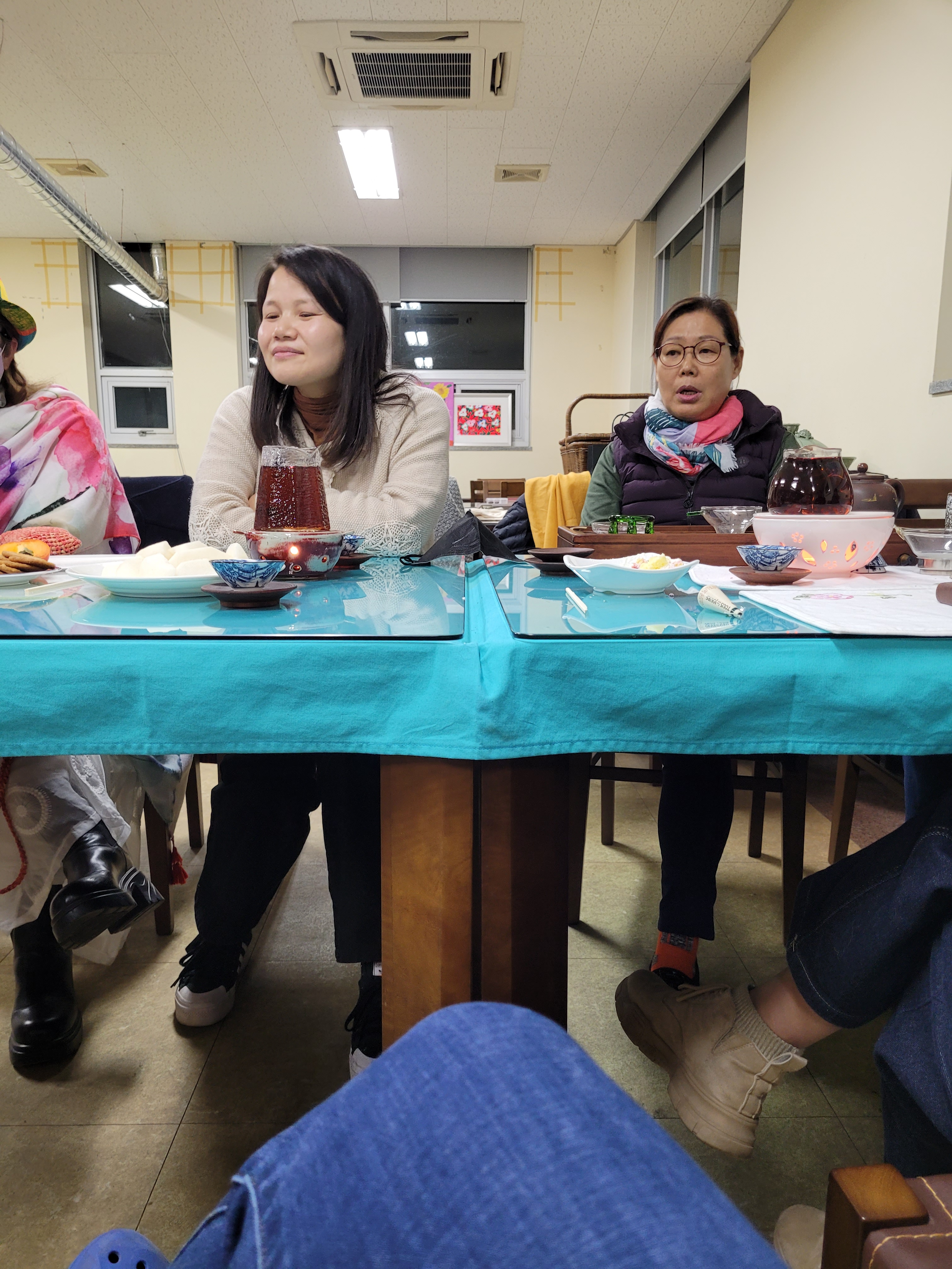 I felt privileged to be seated at the table. I was offered never-ending cups of tea. There was patience when I tried using my minimal Korean. I was asked questions and included. I internally exploded from excitement to be asked my age (a common question for Korean people, but this was my first time being asked, which made me feel a real part of the conversation) and to discover I was actually the youngest person (by 1 year) in the group. I was even more touched to be told by the lady next to me that this made all the other ladies my poetry unnie’s (older sisters) and the woman a year older than me (who I swear looked like Kim Tae Ri and I told her so which she really liked) called me her dongsaeng (younger sibling) and told me I was gwiyeopda (cute) when I shuffled off to get more wood for the fire. Honestly, it was all totally lovely and sweet.