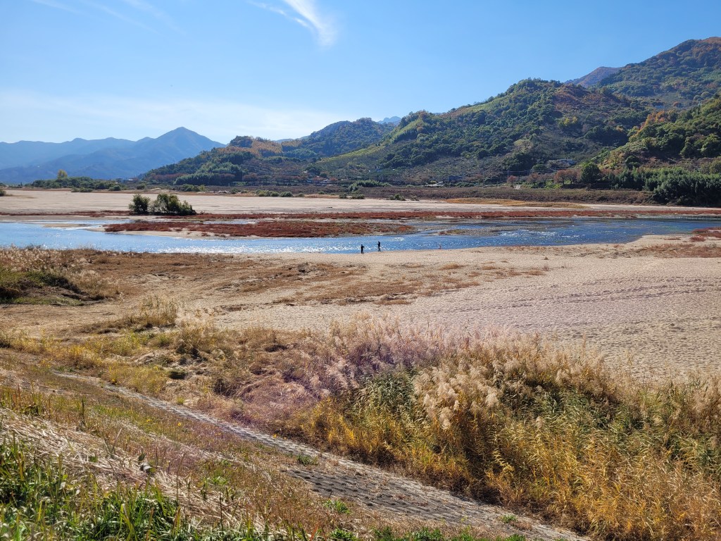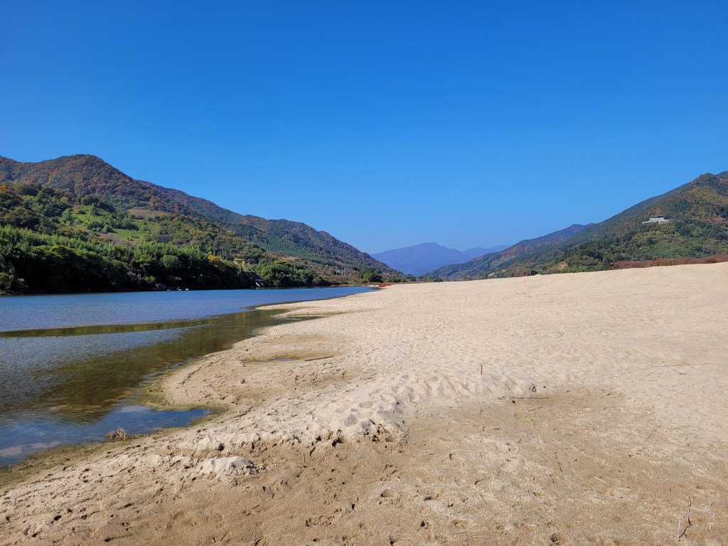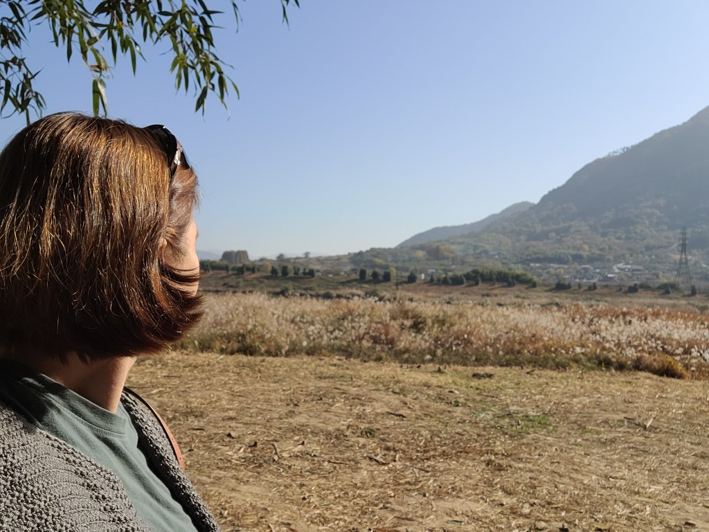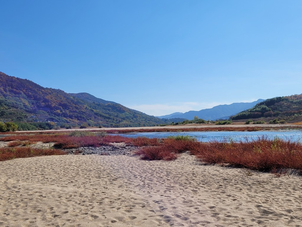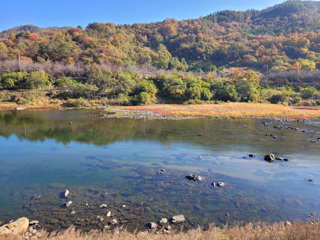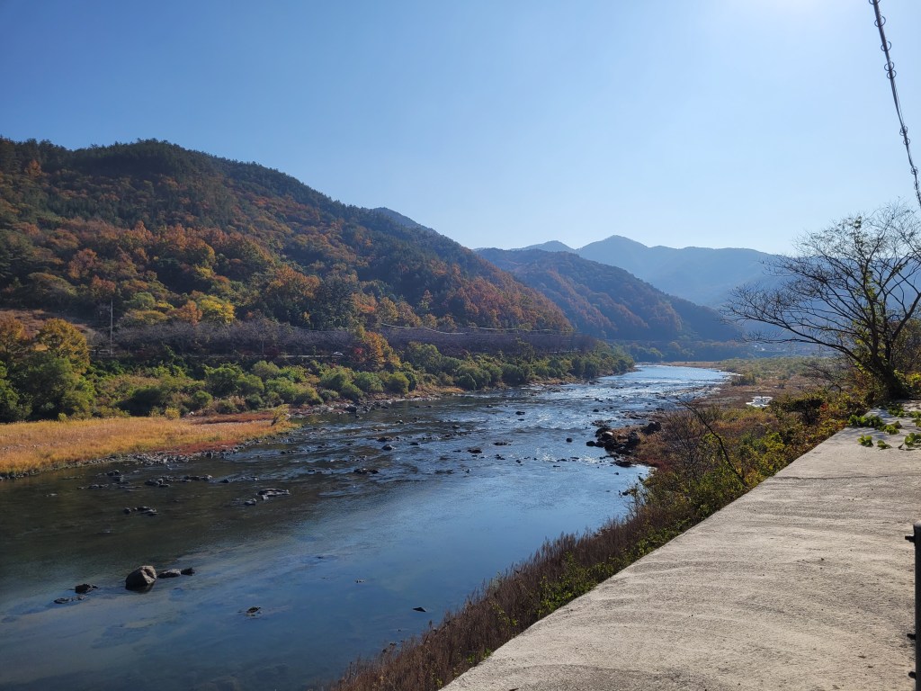 I make my way down to the river, kick off my shoes, and wander slowly along the sand barefoot. The sun shines and the river sparkles – 반짝반짝. I feel the mixture of delight and excitement to be standing in this spot. The vision of Kyungsoo here is strong and clear in my mind. But I also unmistakably feel a different pleasure too, perhaps slightly unexpected, one of simply enjoying and marveling at such a beautiful sight in its own right, even without my personal association.