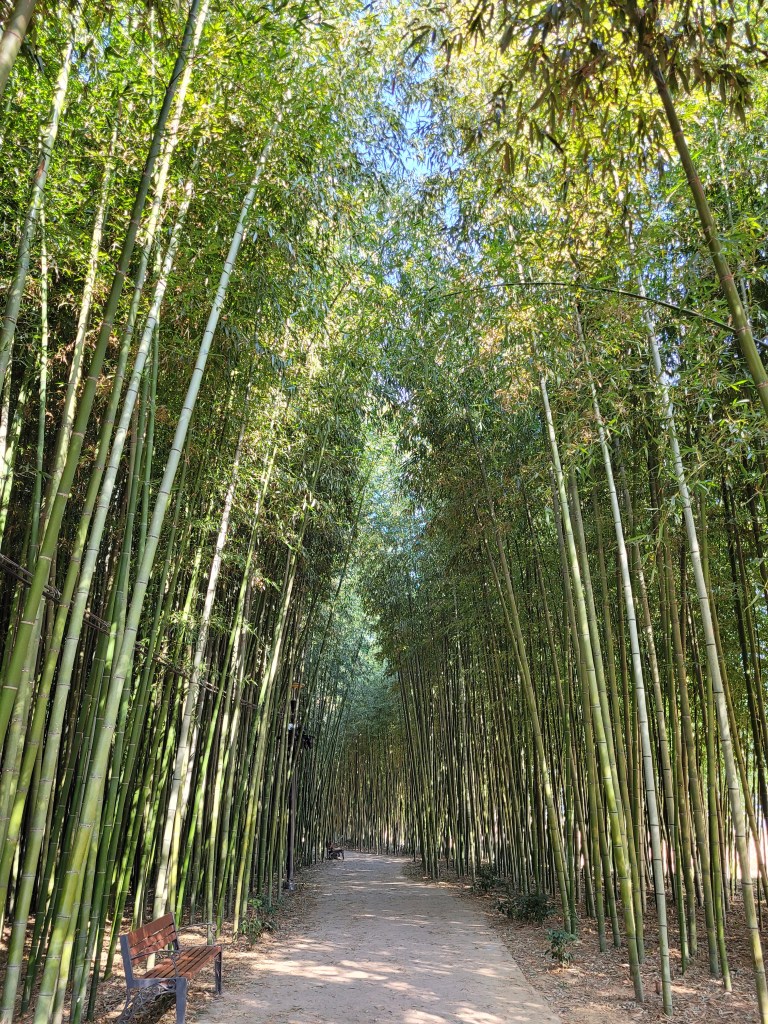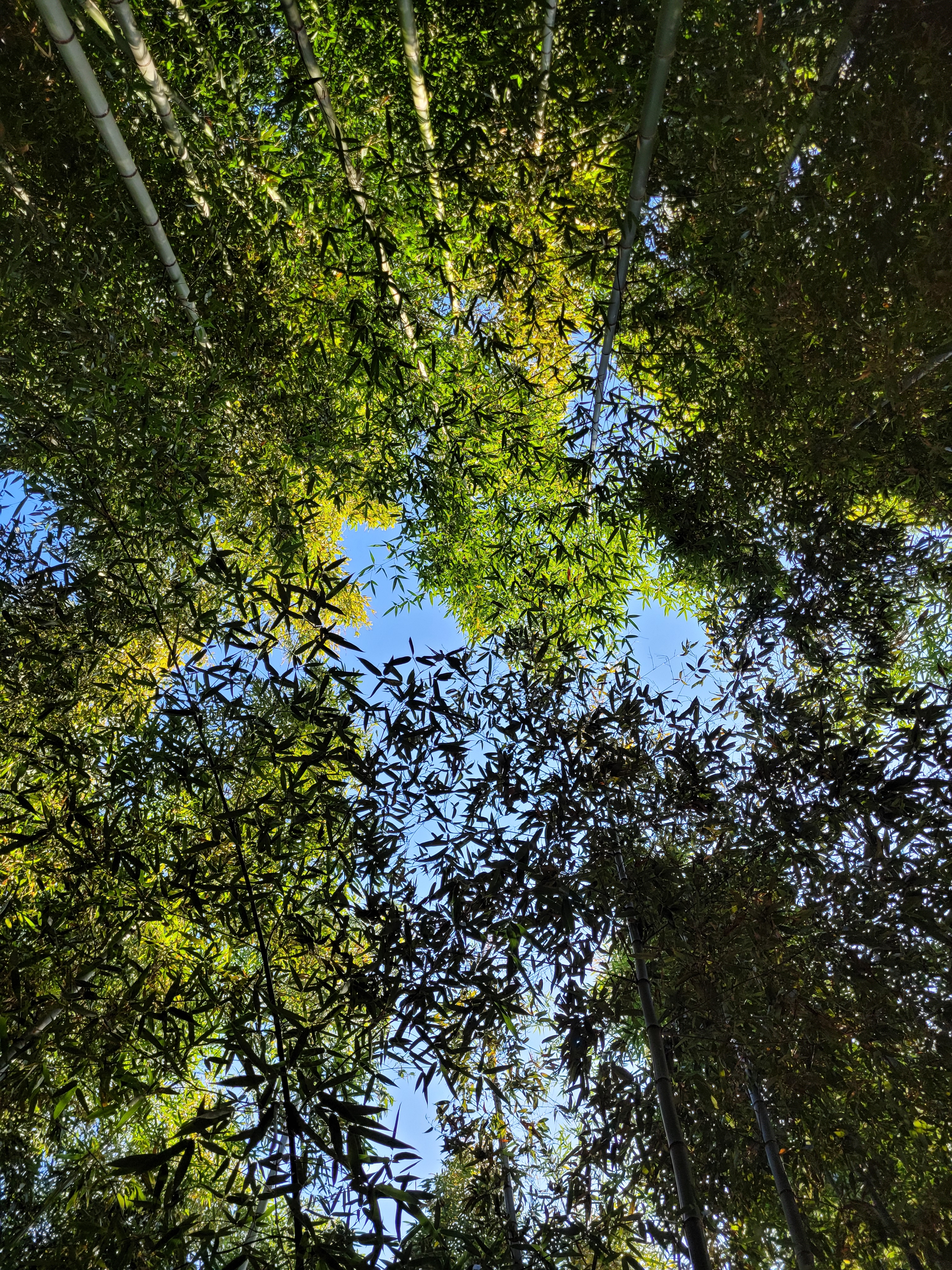 What I learned today about bamboo forests…they can be cold. Not just chilly mind, but cold. Slightly underprepared without my coat, but unwilling to walk the short journey back to the car, I suck it up and plunge along the path, shivering only a smidge now and then. And actually, I kind of like this. I can see the rays of sun as I peer through the trees, the promise of warmth, and every now and then come upon breaks in the forest where I can step out into the light and bask like a lizard to get warm and mobile, and then dip back into the chill again. In an odd way, it’s invigorating.