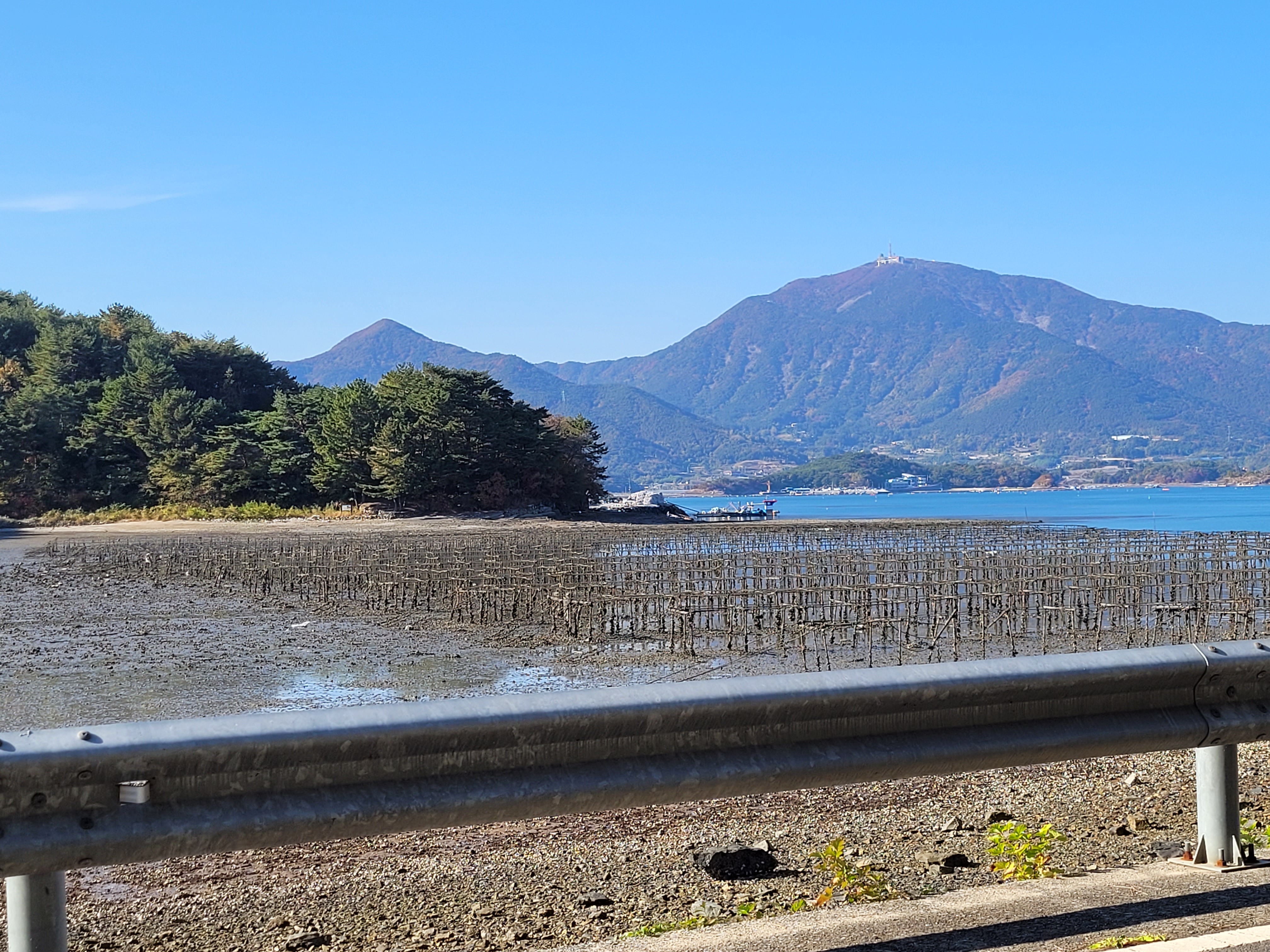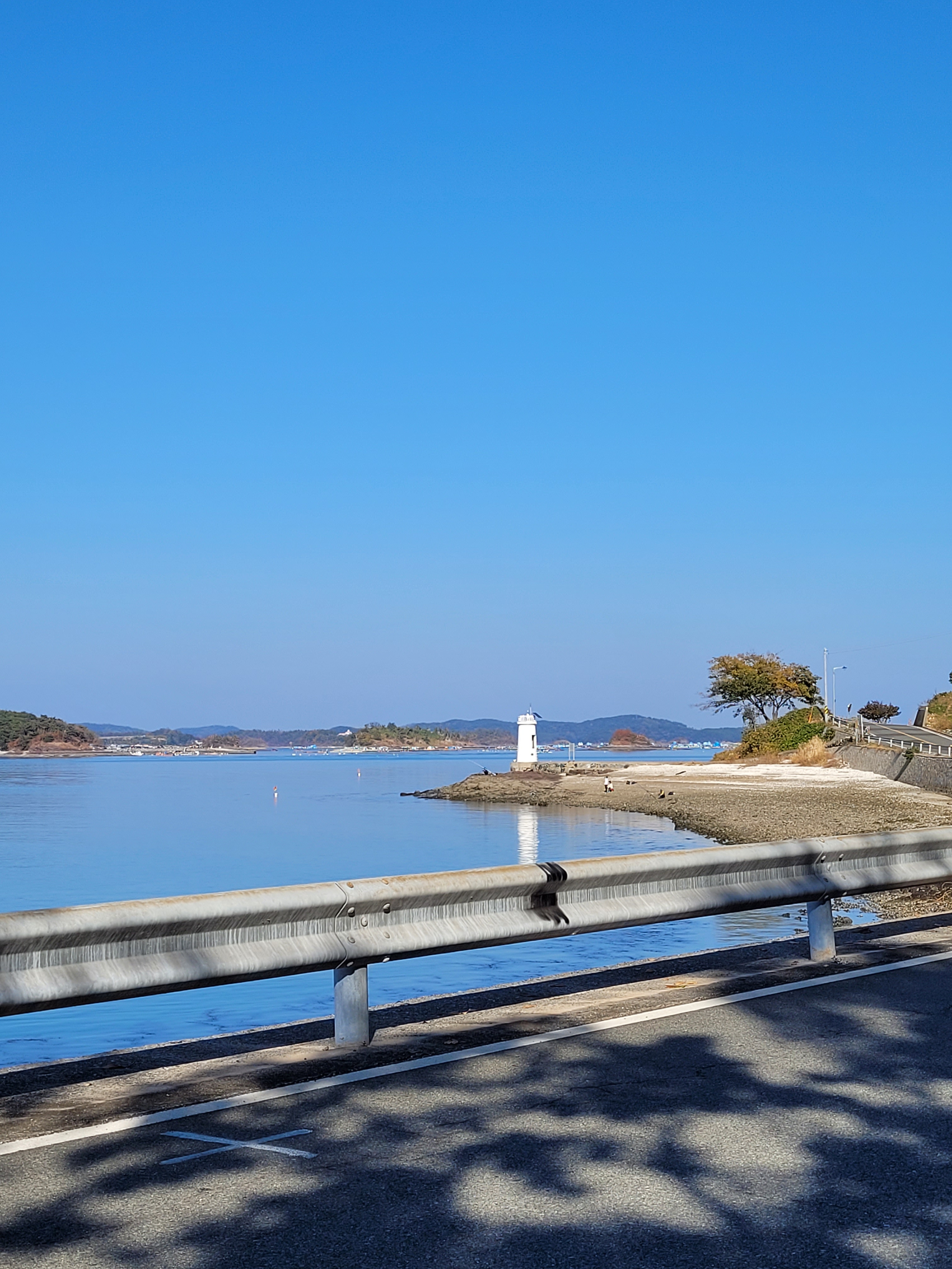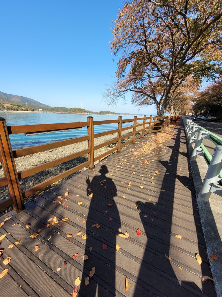 Crossing the bridge onto Namhae, I veer off the main path, opting to take the smaller eastern road following the coast. I spot a boardwalk running between the road and beach and make my second unscheduled stop of the day.