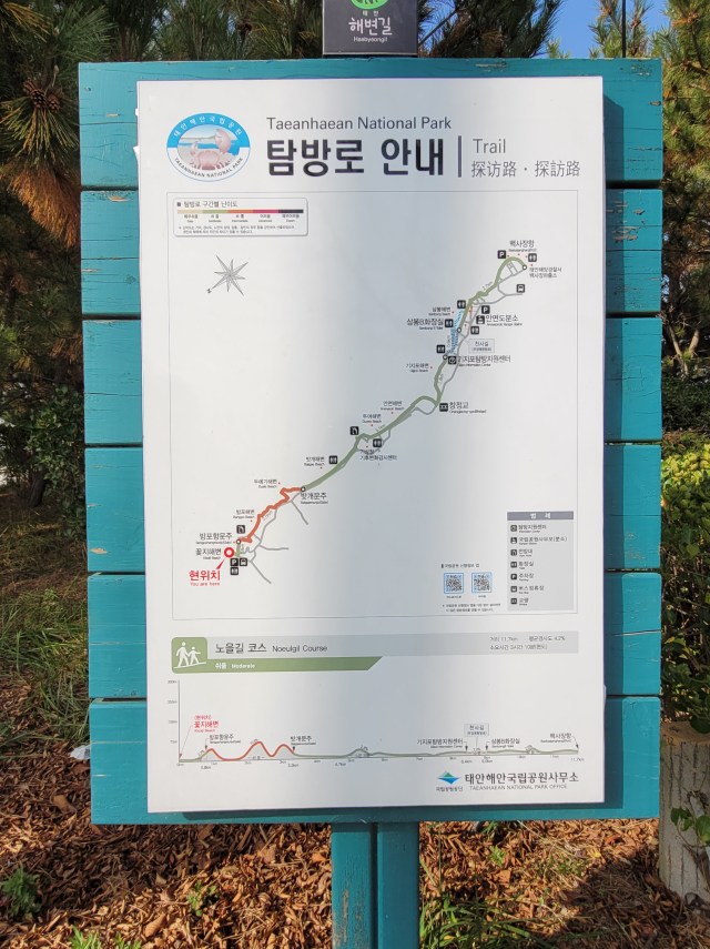 I specifically head to Anmyeondo Ranger Station at Sambong Beach as this is where I assume that I will be able to find my last hiking stamp, planning to collect it first while they are open, and then continue my beach walking. However I discover, thanks to the nice ranger lady and both us trying our best to communicate in Korean (definitely no English out this way), that the stamp I want is actually down at Gijipo Beach, about 5 minutes away by car.