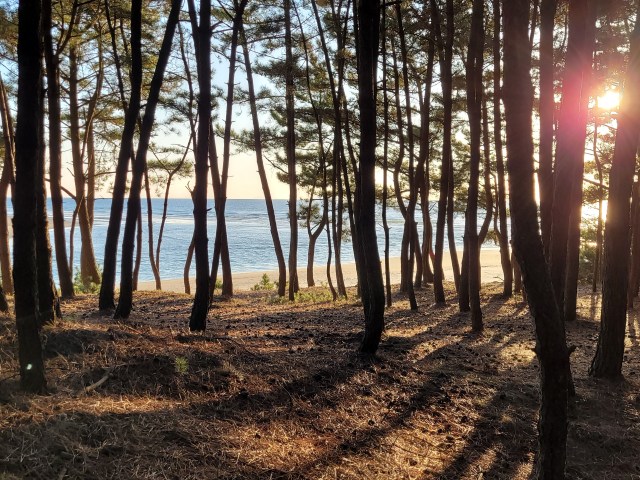 The trail from Sambong consists of beach front boardwalk with small side trails every now and then that pop out onto the actual sand. The boardwalk also meanders through the pine woodland right next to the beach and provides a pleasing, restful, and serene location for a stroll. As a bonus, you get to meet interesting characters along the way.