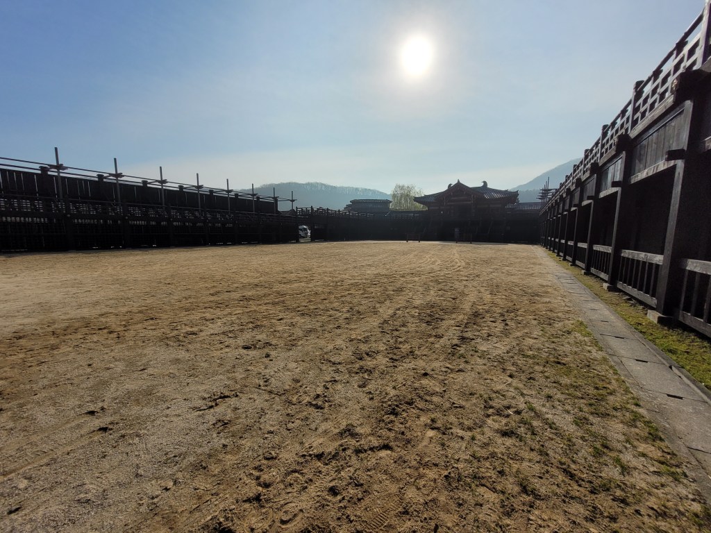 The park is like wandering around a historic town or mini city, all the elements you could possibly need to host a drama are there, at least, all of the outdoor bits. There’s a folk village for peasant people to live in, a temple on a hilltop, an old wooden arena and tavern type buildings, several houses and buildings for nobility, an underground prison, a city wall and gate, and finally, a palace with courtyard – a wonderfully immense structure and open space that made me gasp as I walked through the gateway and took it all in.
