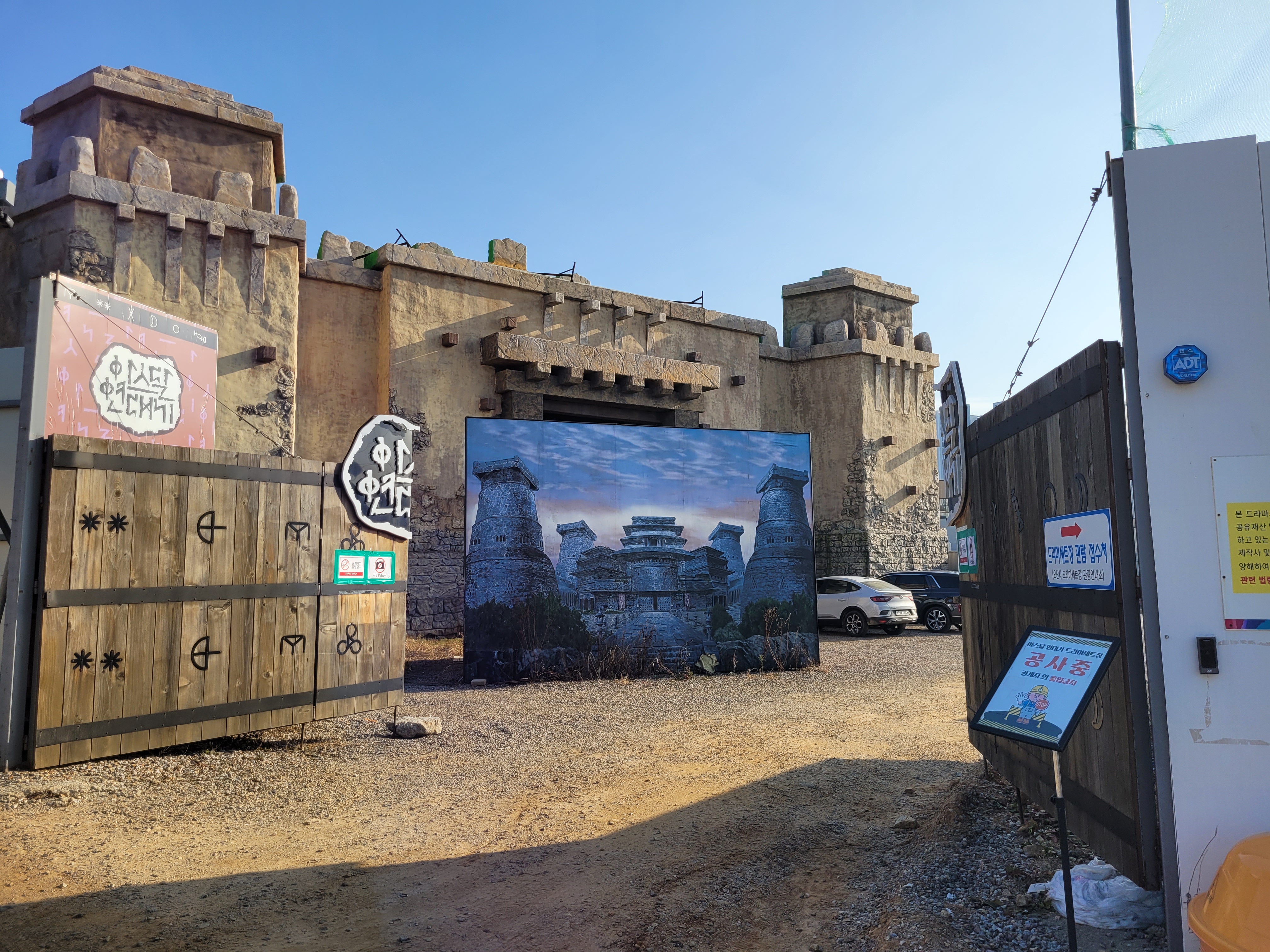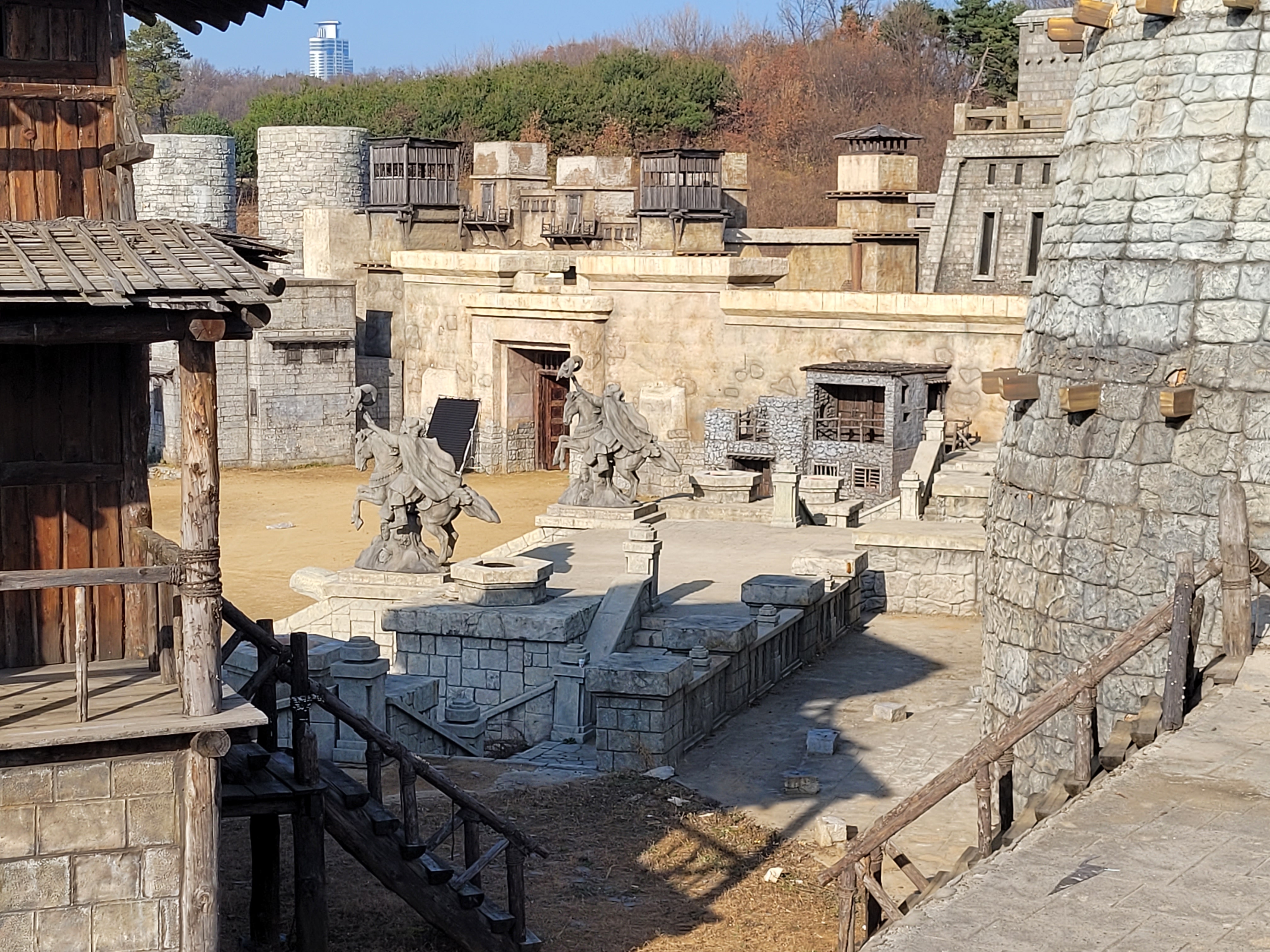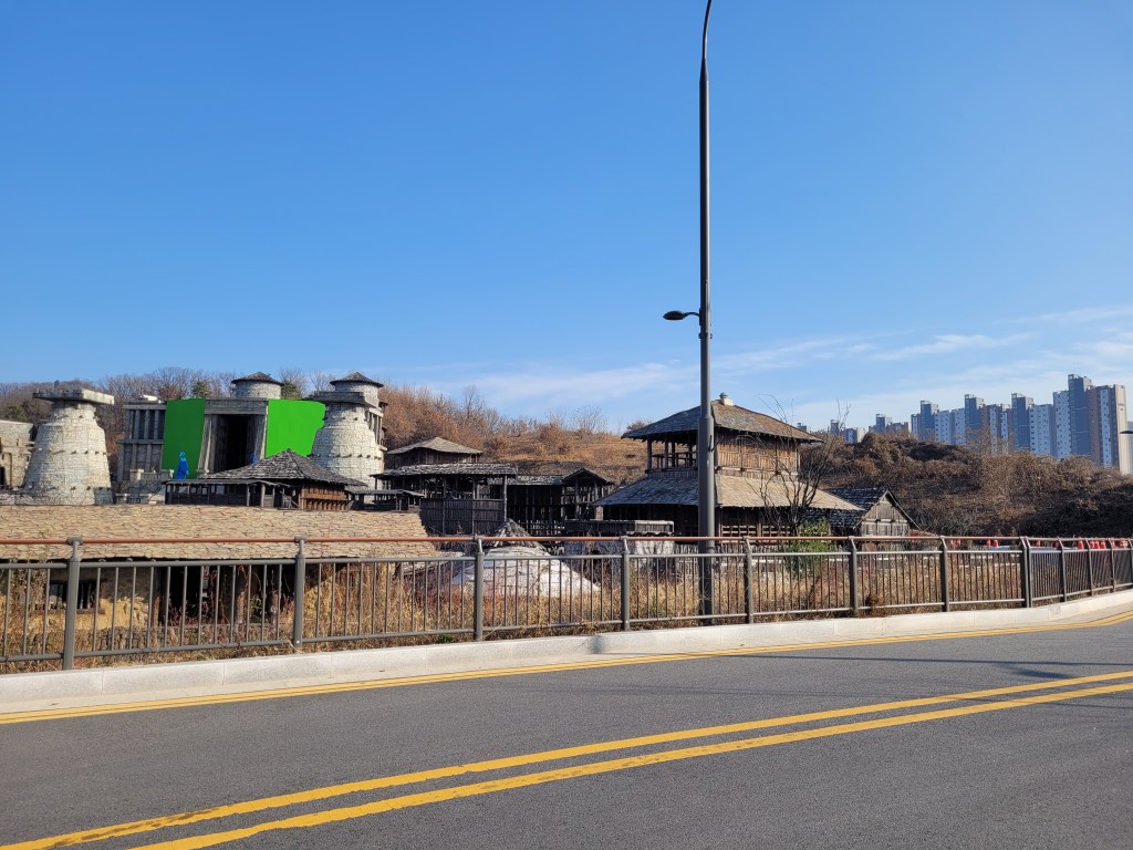 With my head firmly in film land, I make a bit of a snap decision to go and check out another location on route to Seoul. I feel I might be on a bit of a wild goose chase here, but I have found online the apparent address of the film set for the drama Arthdal Chronicles. I say apparent, because when I view the address on the map, it appears to be right in the centre of the city of Osan. That to me seems a smidge suspect, especially for anyone who has watched the drama and knows it is set in this wild fantasy world that isn’t remotely like the downtown of a Korean city.