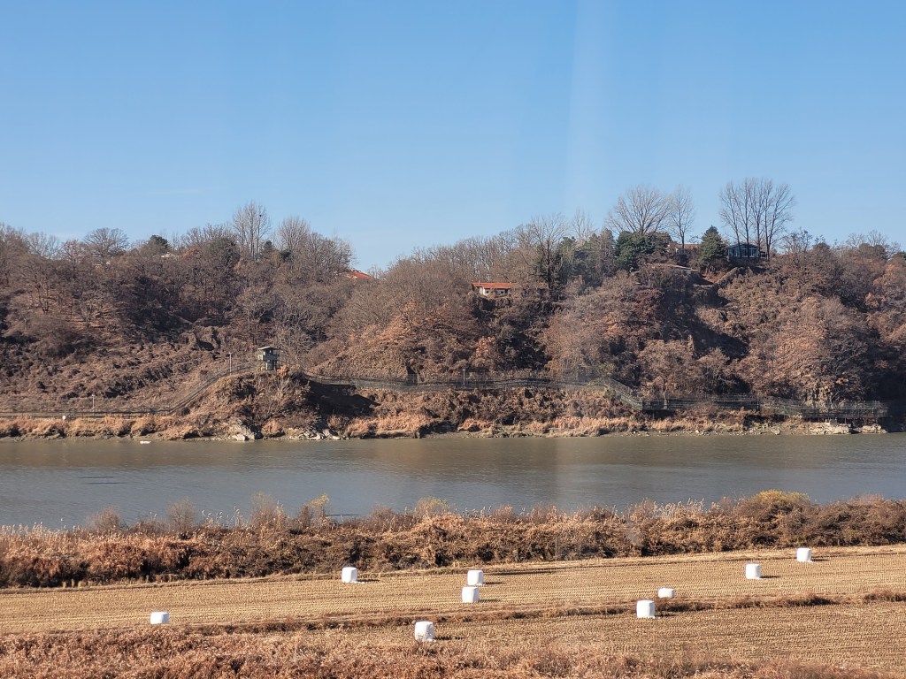You don’t have to step foot into the DMZ, you don’t have to pay for any fancy tours; the country is not hidden a million miles behind a border never to have eyes laid on it. You simply need to drive out of Paju in the northern part of Seoul, along the 77 highway, and look to your left out across the river…and that’s North Korea.