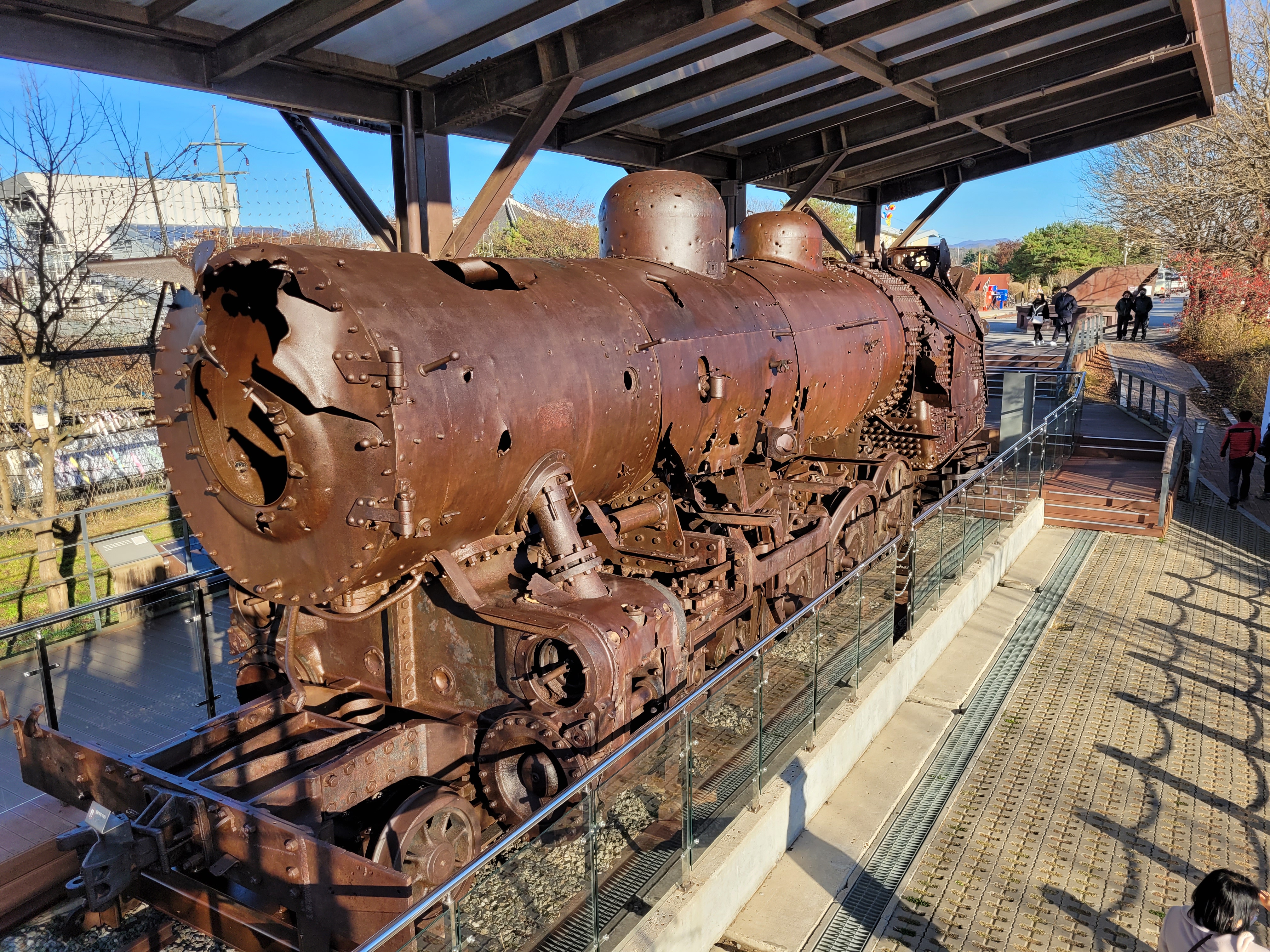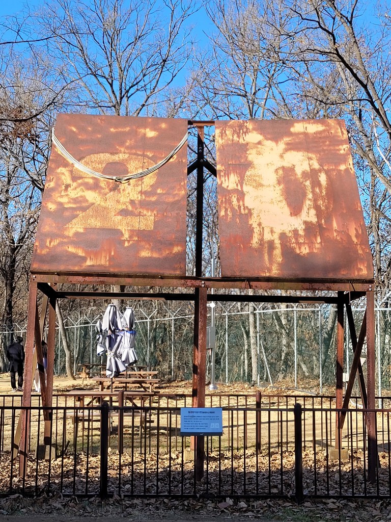 The park sits on the banks of the Imjin River and contains a host of art installations, statues and monuments, as well as an observation deck with a gondola that crosses the river to Camp Greaves. This is also the resting site of the ‘Peace Train’, the last train to cross the North/South Korean border used to move supplies during the war. I don’t know the full story behind it, but it is riddled with bullet holes. Additionally, Freedom Bridge is located here, a former railroad bridge connecting the two Koreas across which POW’s were exchanged.