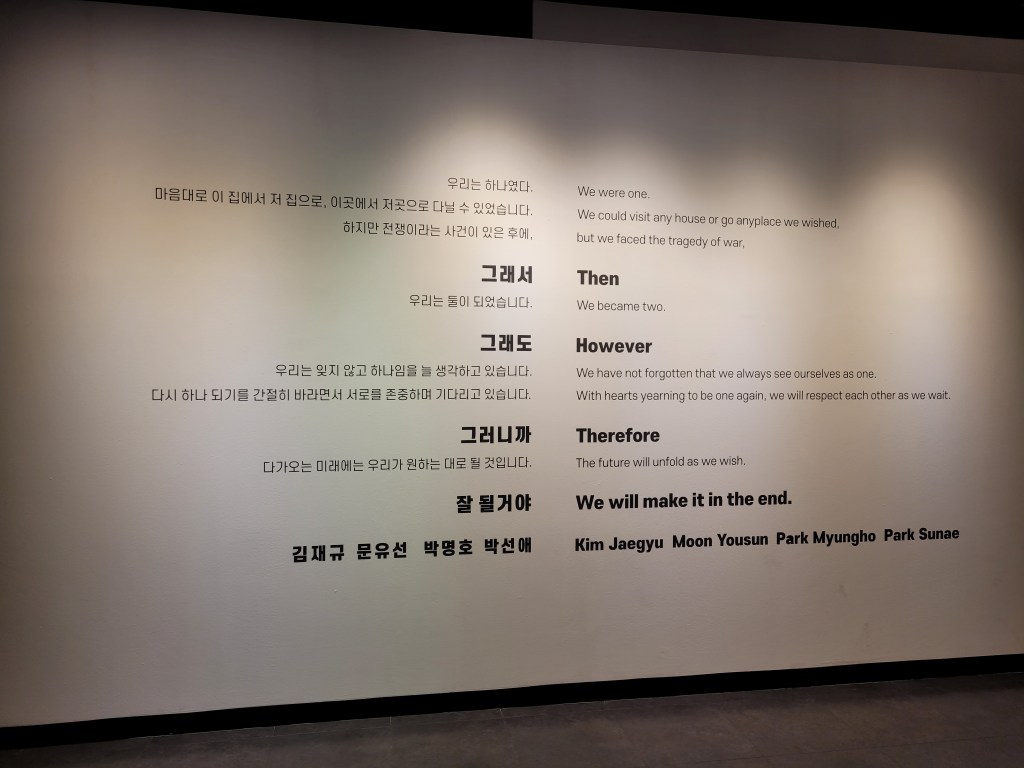 The first place to visit is an area depicting the timeline of historical events showing the division of the two countries and the attempts made at reconciliation in the past. For people who don’t know much about the background of these events, it is an interesting and enlightening trip through time.