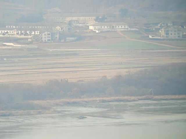 Yup, that’s a little North Korean town. And yes, those are people working in the fields. And you’re right, you can see them very easily from South Korea. Surprised? Well, I totally was.