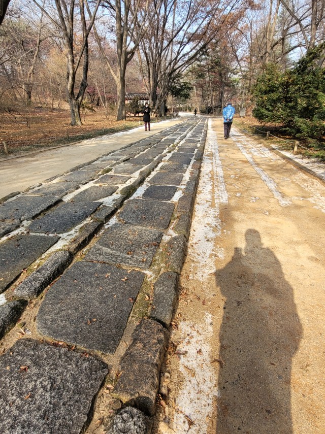 This is the Sillo path. The sign here tells me that this is the pathway for spirits and not to walk on it. Apparently when a memorial tablet was brought into the shrine, the official person carrying it walked along the stone path; to the right for the king, to the left for the queen.