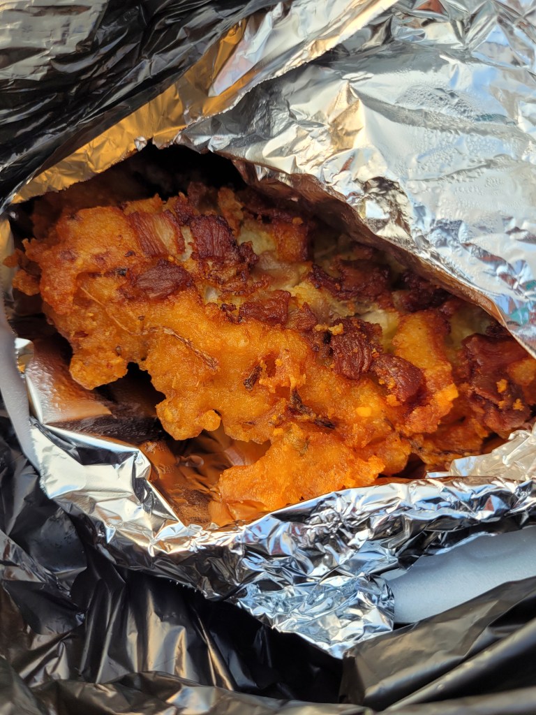 And immediately I curse myself to have waited all this time to try it, it’s absolutely delicious. It is also huge, too large for one meal, and so once I have had my fill, I tuck the remainder into my backpack to save for dinner.